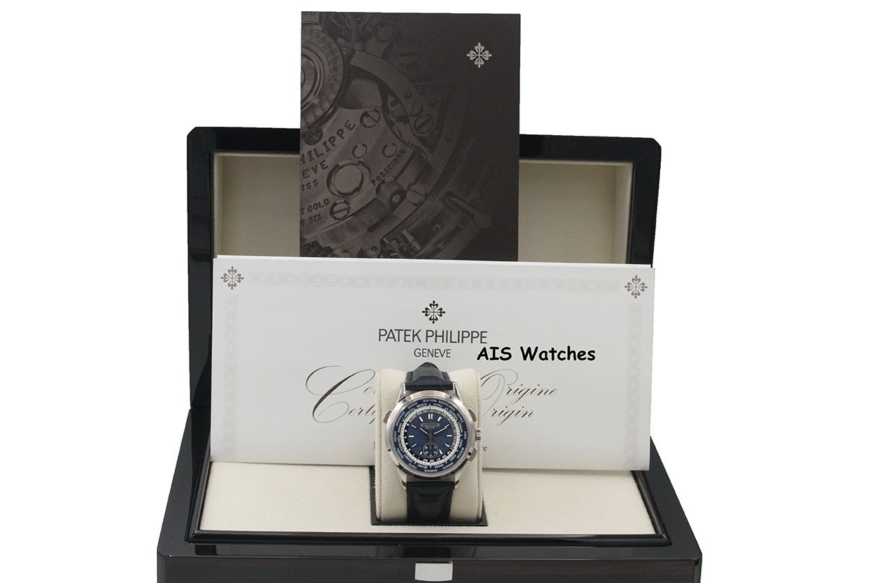 ** Patek Philippe 5930G-010 World Time Chronograph White Gold Blue Dial 39.50MM