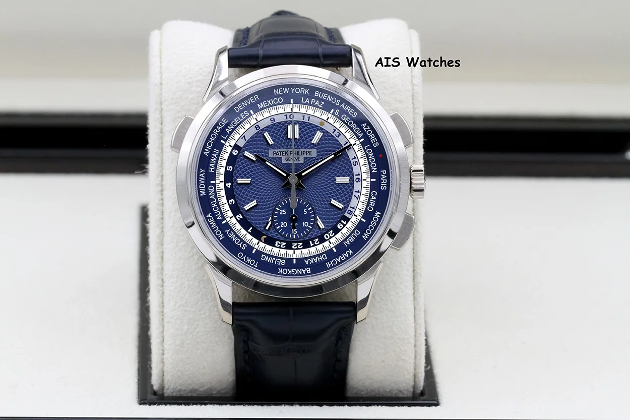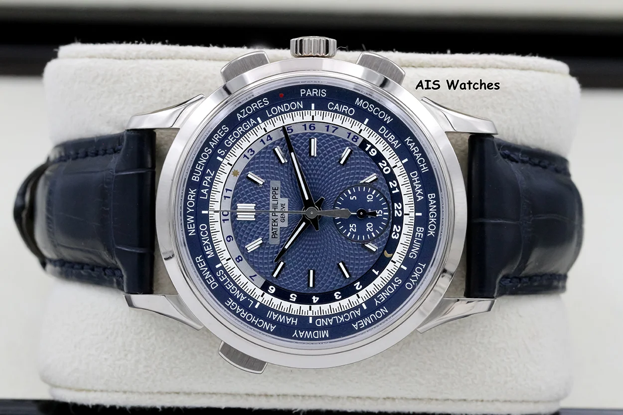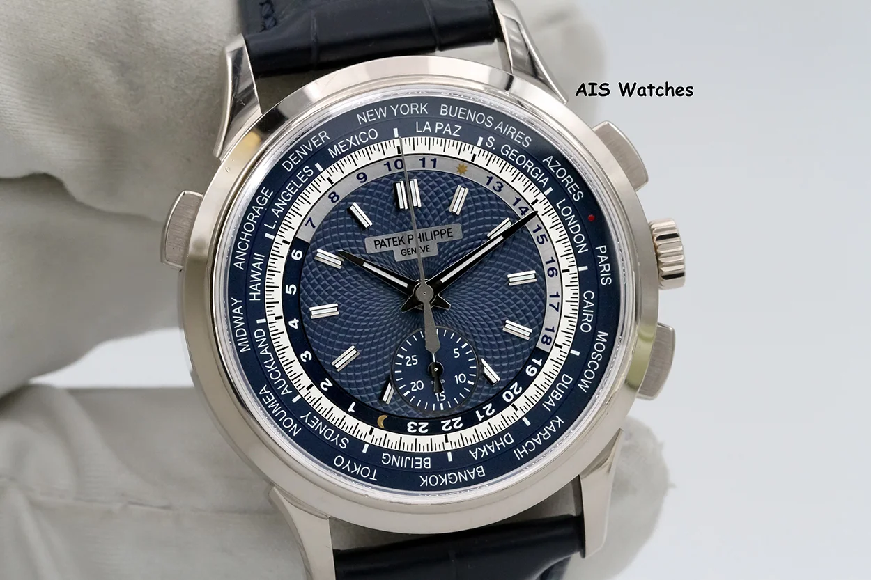 ** Patek Philippe 5930G-010 World Time Chronograph White Gold Blue Dial 39.50MM