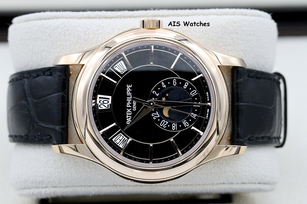 Up for sale is a Patek Philippe Annual Calendar 5205R Rose Gold Black Dial - Deployment Clasp - Box & Papers. The timepiece is in excellent condition.