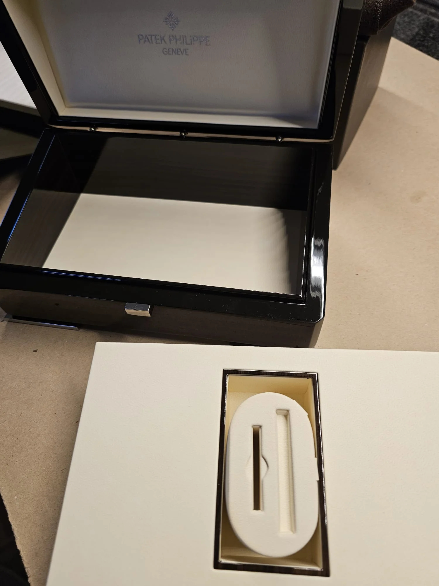 Posts 537 Likes 1,799 Frederic_gva ·Jan 22, 2026 For sale a complete PP wooden box + outterbox, etc... brand new can be used as a jewel box Located in Switzerland, strap can easily be shipped from UE revolut payment, I don't have paypal I have a lot of good references in the seller reviews Edited: Jan 22, 2026