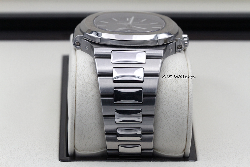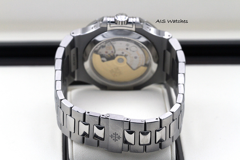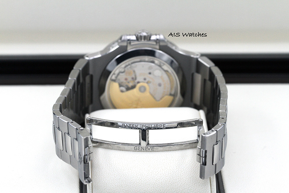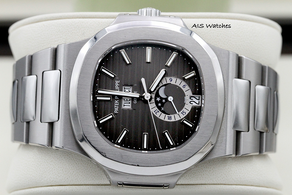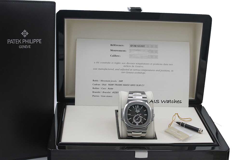 Up for sale is a Patek Philippe Nautilus 5726 / 1A Grey Dial Annual Calendar / Moonphase Stainless Steel Bracelet Box & Papers. One owner timepiece in unpolished condition.