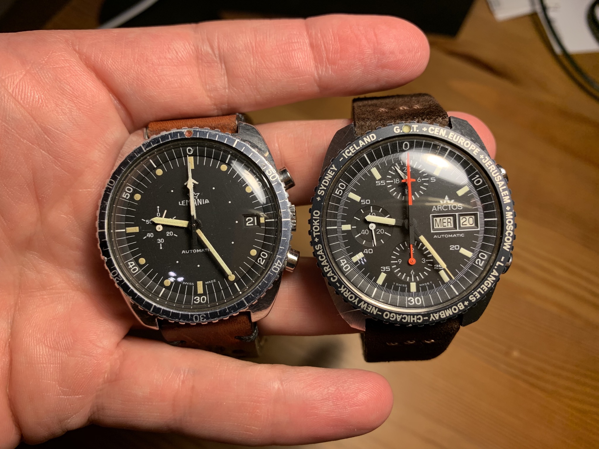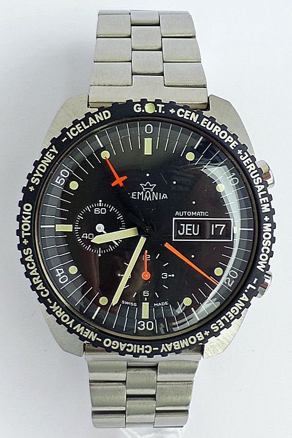 I just came across this weird Lemania—a ref 11004 that I haven’t see before. Almost looks like a mix between an 11004 and a Sinn 140. Are you guys familiar with ref 11004 with cal 5100 GMT movement AND an Italian day wheel? The world time internal bezel looks pretty sweet, but I’m not sure if this one’s authentic...
