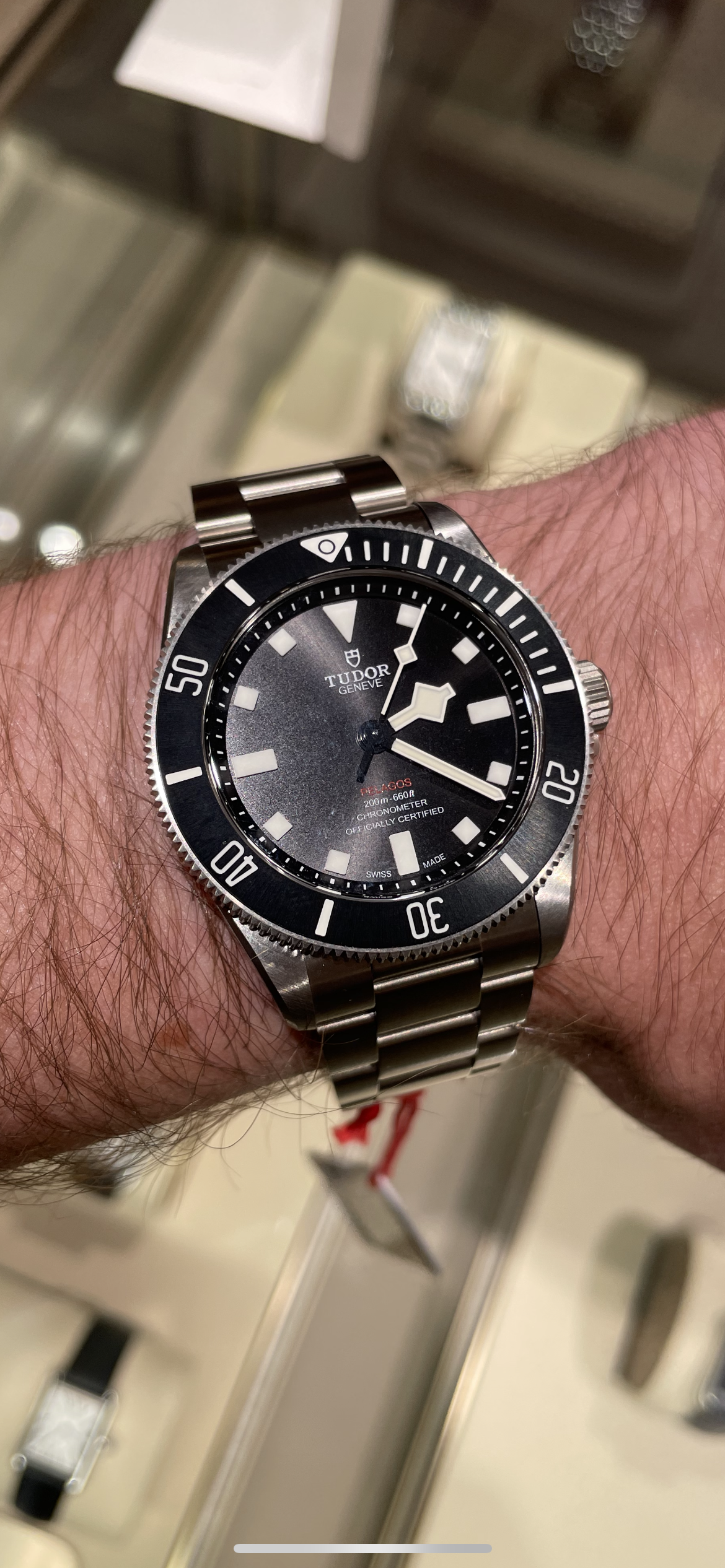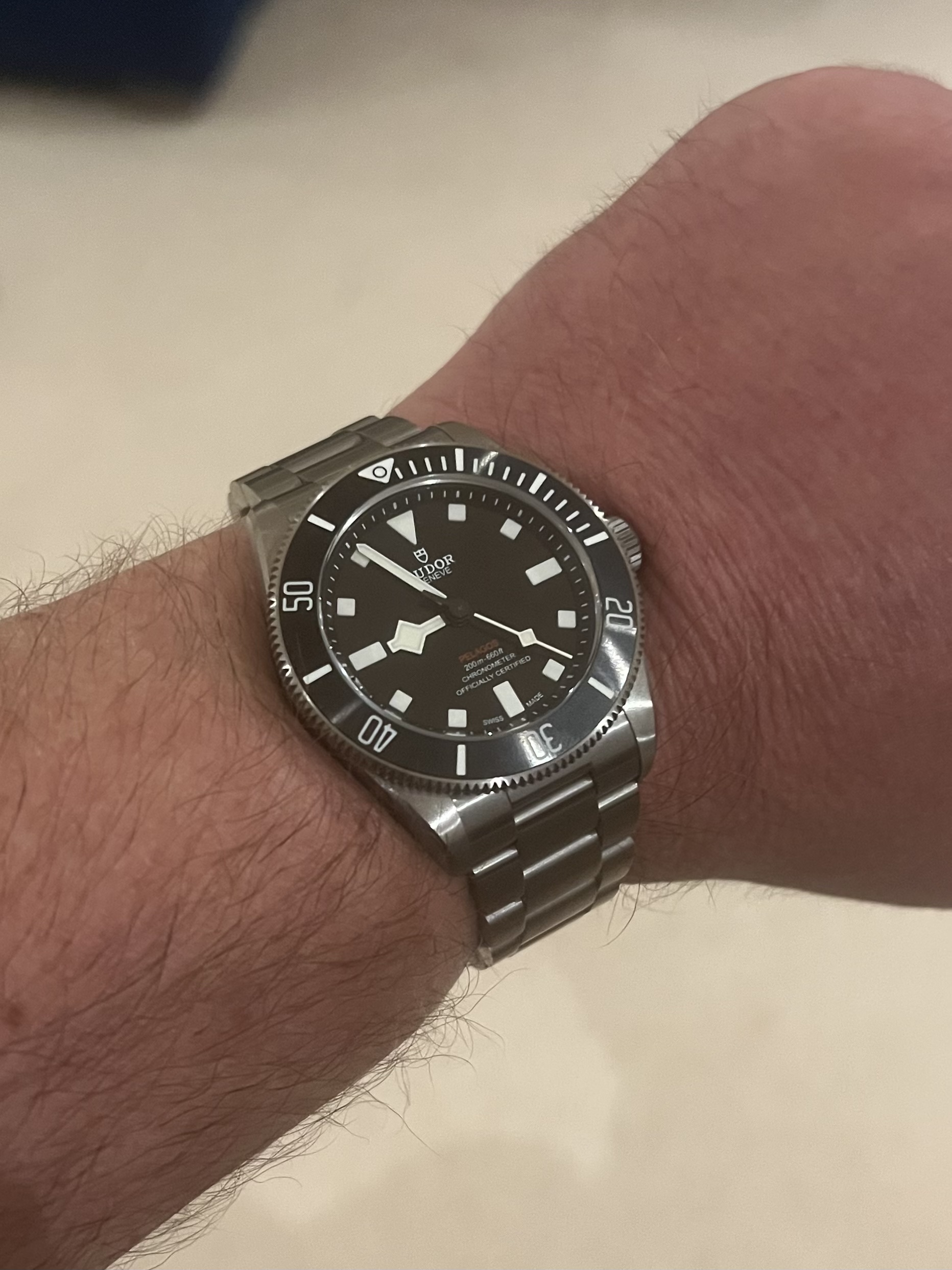 Also had the chance to try it on and while I like the proportions I preferred many of the details of my tried and true Pelagos 41mm blue -- matte finishes on dial and bezel, ability to grip the bezel with dive gloves or when wet, raised rehaute and deeper applied indices, overall balance. Honestly, I think the new downsized model is benefiting a bit from the current Tudo halo. I'd take the original over the 39mm if it fits, and the BB58 hands-down over the Pelagos 39 -- it's just a more complete and balanced design, IMO.