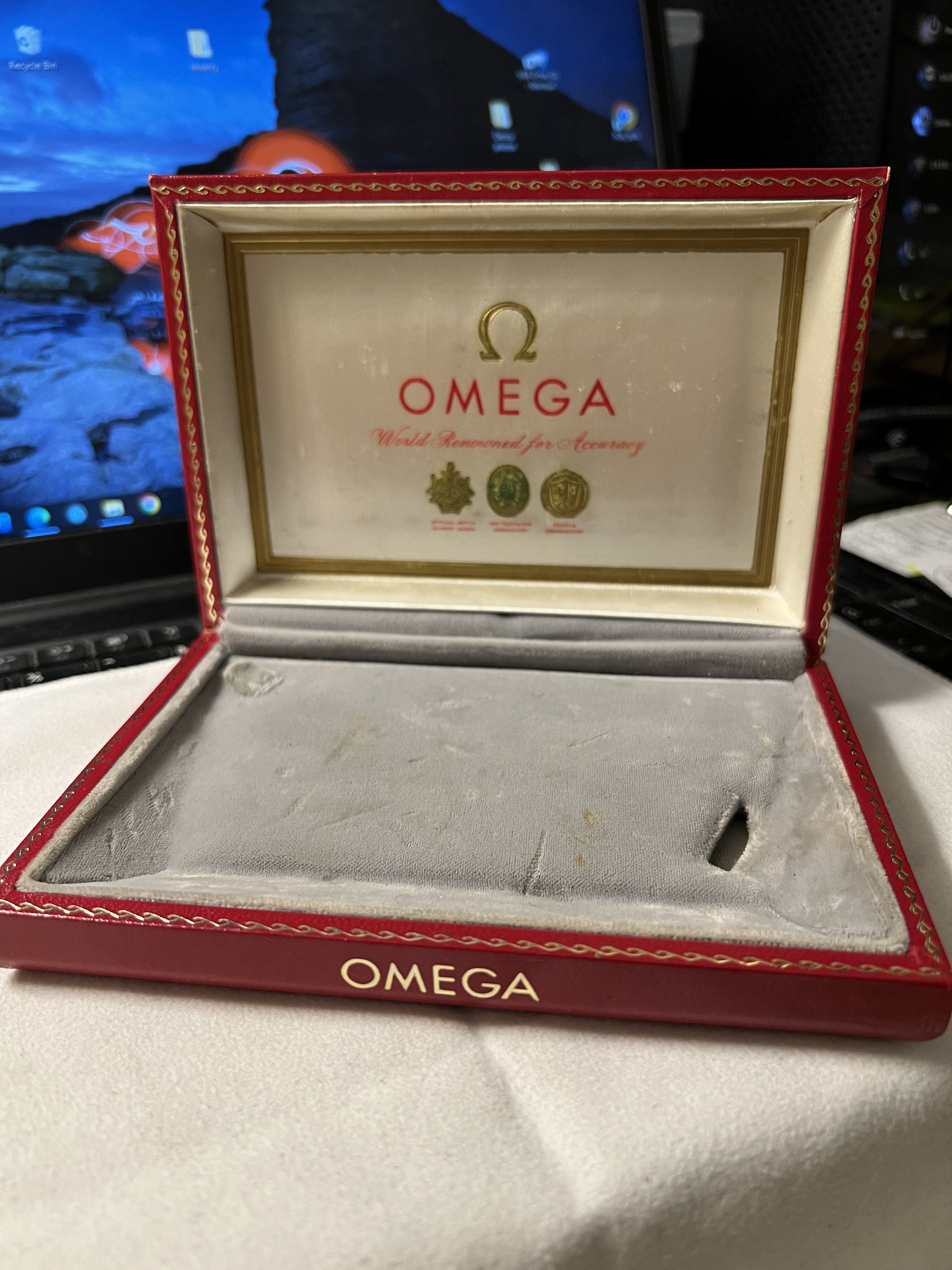·I inherited my father's 1961 Omega Geneve Cal 610...it came with the original book and receipt from the store he bought it in Athens, Greece. I had installed the correct signed crystal and correct crown. I would like to complete this by adding a correct period box. Does anyone know what it looked like? dimensions? color? if anyone can attach a pic that would be great.