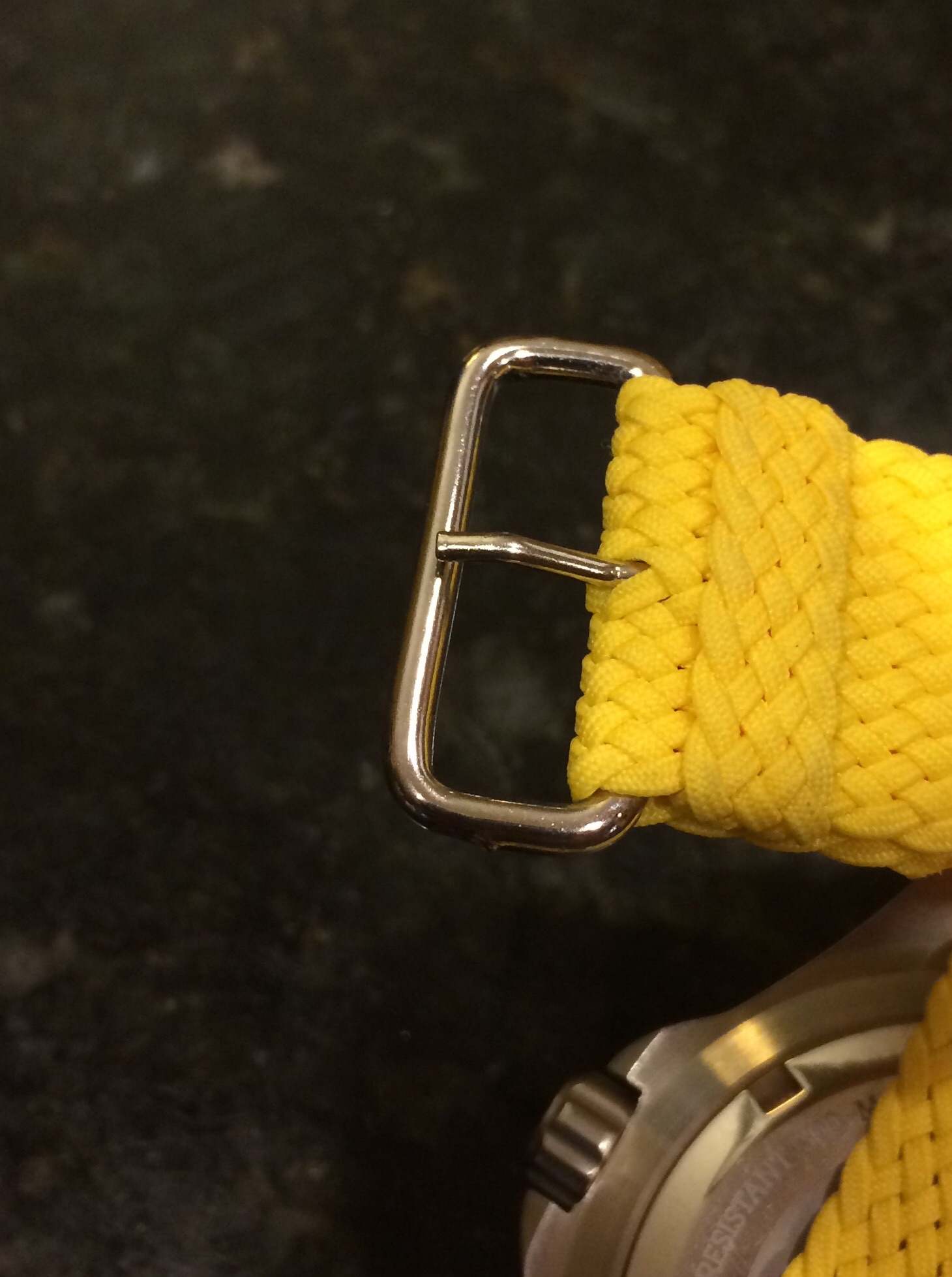 I have tried several different sellers. All so far have had crappy stamped metal buckles with wobbly pins that can barely pierce the loose weave of the strap.