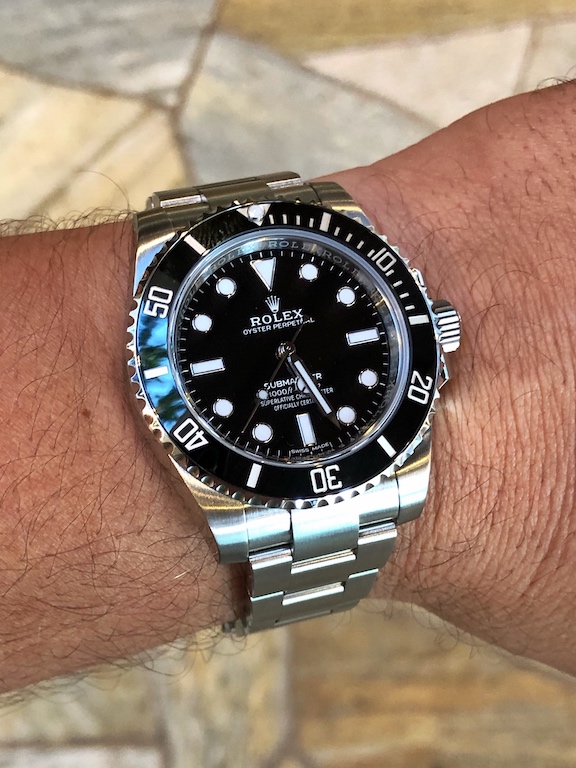 ·I was on "the list" for a steel Submariner after buying a gold Daytona (yes, I caved!) and since I was meeting a friend for dinner very close to my Rolex boutique, I swung in to say hello. Someone higher up on "the list" (hint: there's no list) had just decided not to purchase the Submariner he had been offered, so by a minor miracle I walked out of the store with this beauty on my wrist. Only a 3 month wait after purchasing the Daytona, so not bad by Rolex standards 😀. I owned a 14060M a few years ago, but it never really did it for me. The modern Submariner bracelet is just so darn good!