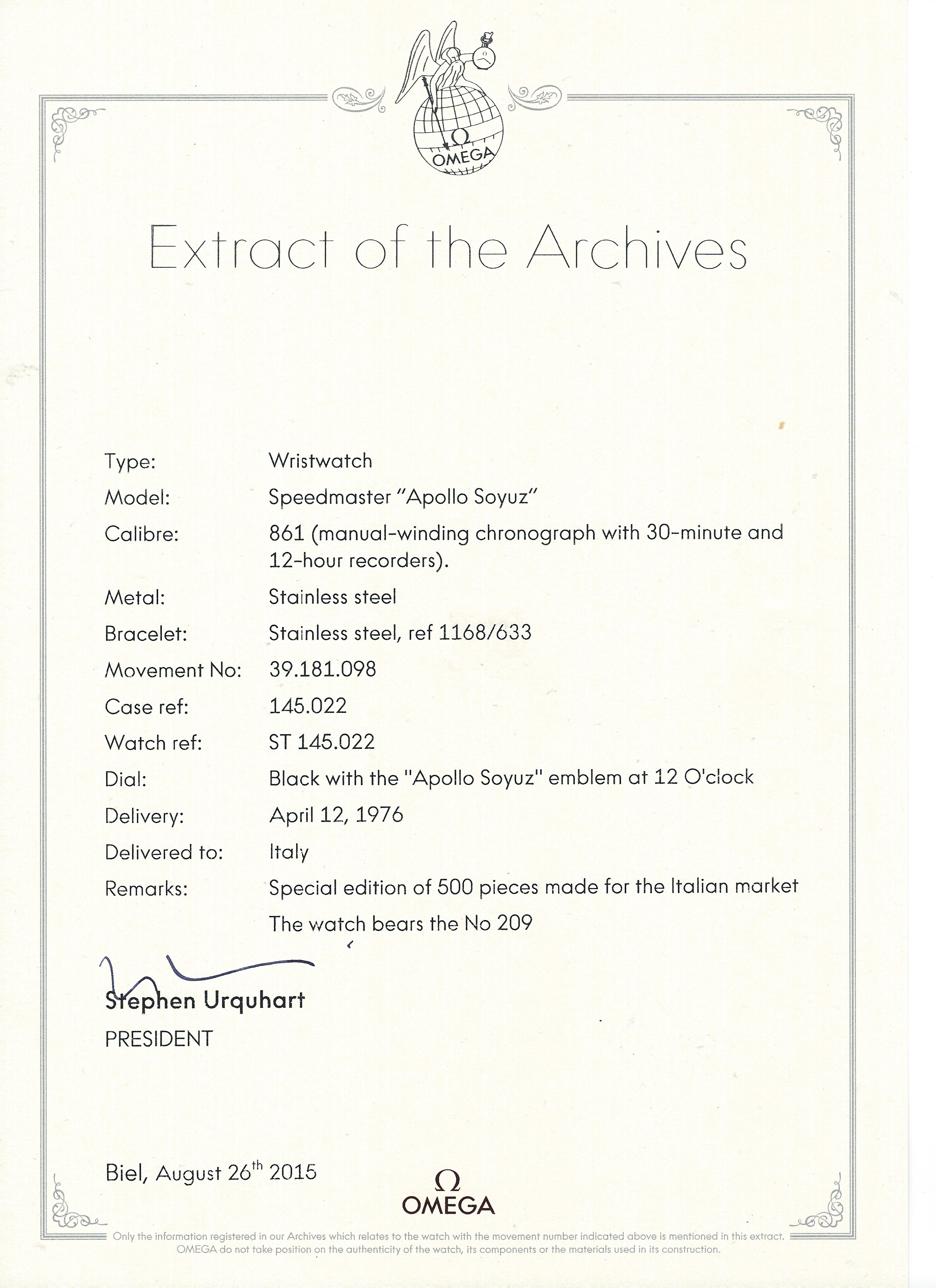 Now I do like an Apollo Soyuz. One of the most desirable speedmasters. Things to watch for is that it is an original Omega produced watch, that it has a case number on the back, 5.5mm pushers and the 1168 bracelet.