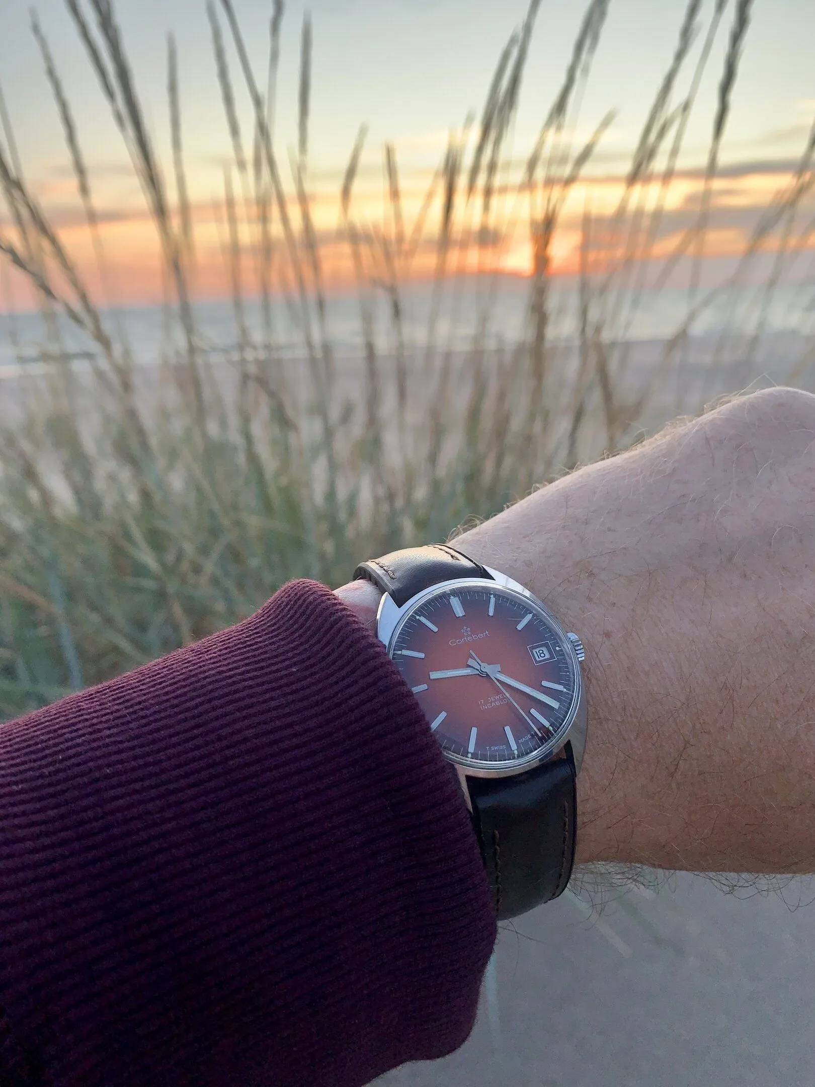 To answer the question, I can go either way. On some days, when I want to wear a particular watch, I choose clothing colours which are complimentary to that watch. On other days, I get dressed, put on a watch, and realize that they're not complimentary and choose a different watch. Weirdly, shoe colour is the most influental factor for watch selection.