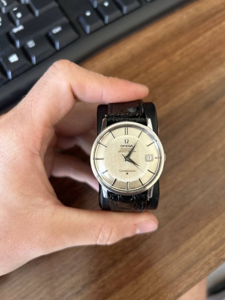 Posts 6,308 Likes 9,750 Peemacgee ·Jun 2, 2024·Purrrr-veyor of luxury cat box loungers welcome to OF @abyoung20 Your watch is a genuine Constellation. Most likely a 168.010 with pie pan dial, from around 1966/67/68. Likely to have a cal 564 movt with quickset date. Looks like an Omega buckle on the after market strap. A nice memento of whoever left to to you.