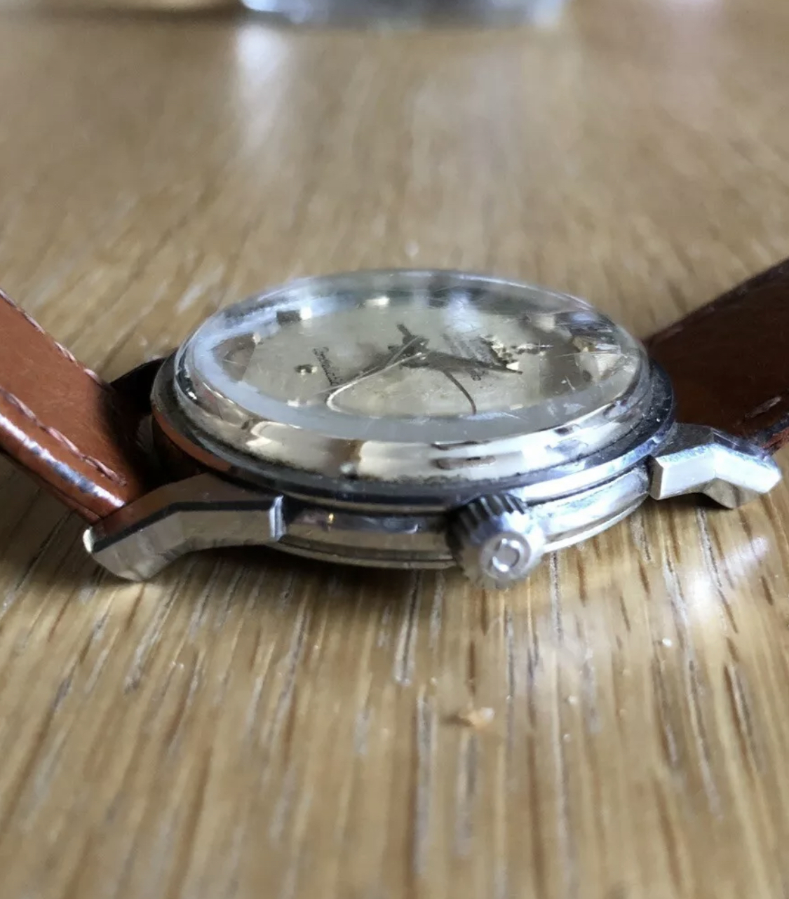 Allowing for the poor photos, the case looks crisp and unpolished (and engraved), the crown matches, the hands look appropriate and the indices and markings could be too. The dial has deterioration bubbles and the crystal does the whole caboodle no favours.