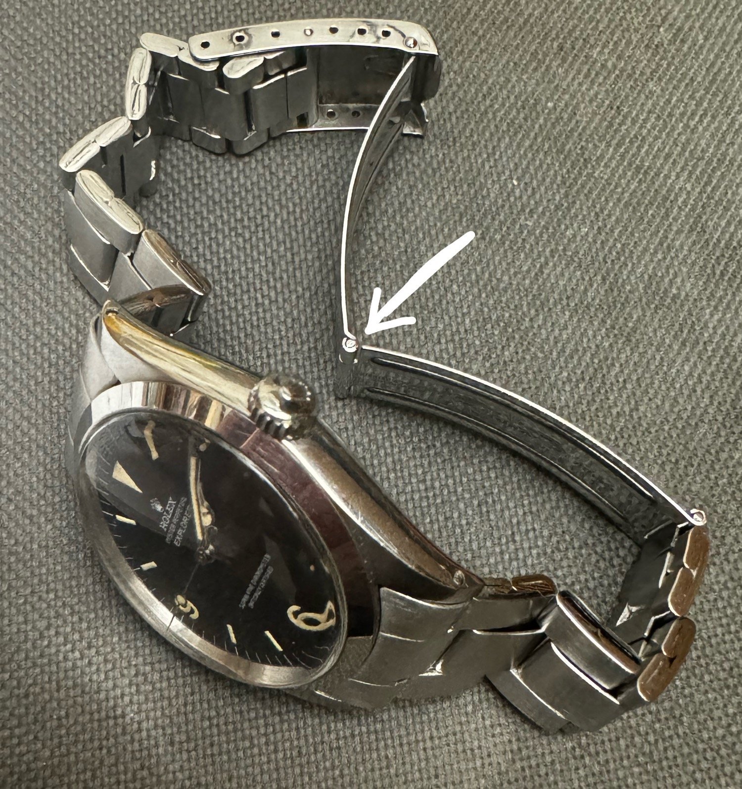 I have a Rolex 1016, on a 7836 bracelet. While I was handling it to prepare to unscrew the crown, the pin that holds the 2 curved blades together somehow just fell out and the 2 blades separated.