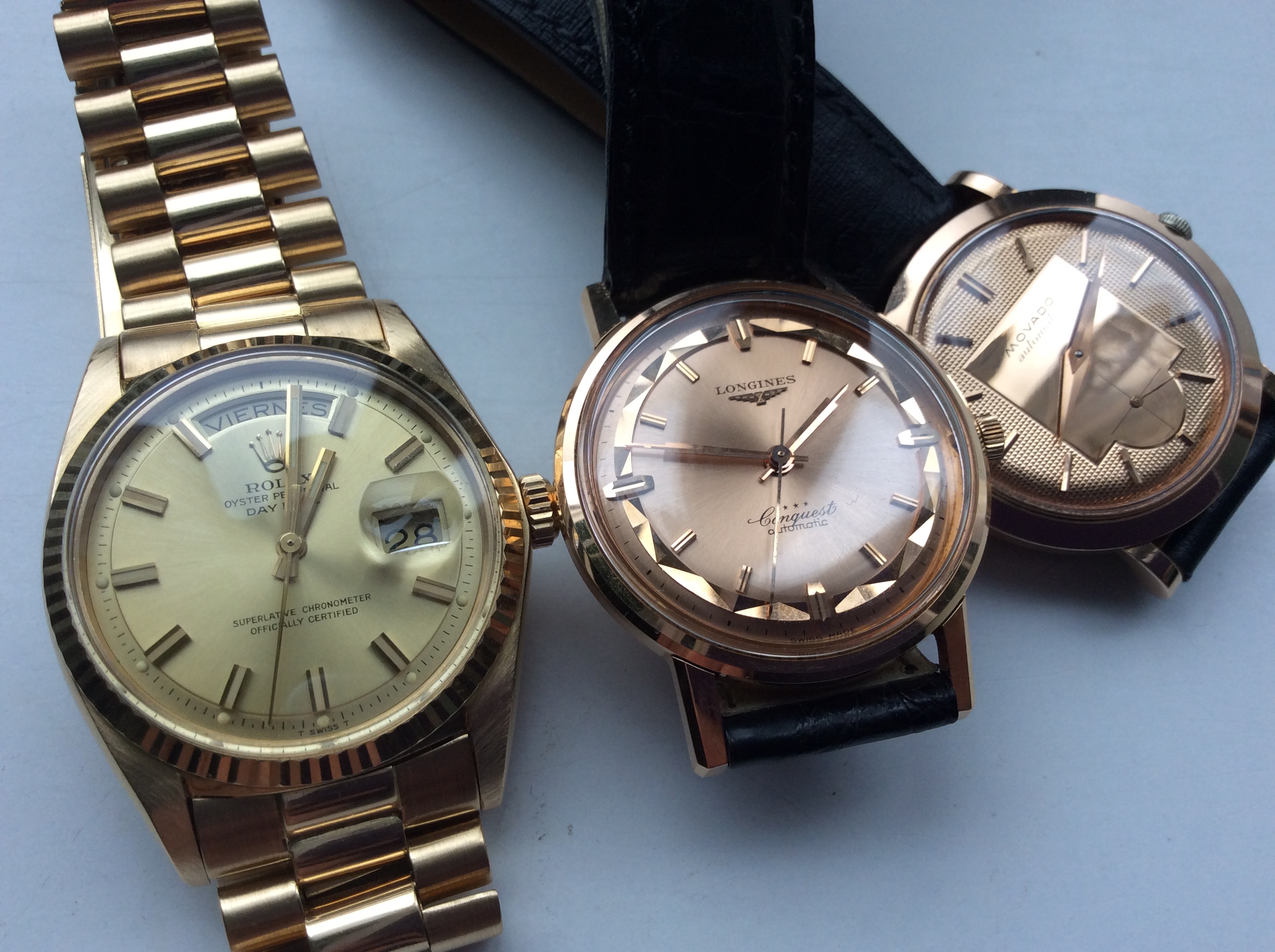 The pinkish color is difficult to capture in picture, but becomes clear when you place them next to a yellow gold watch.