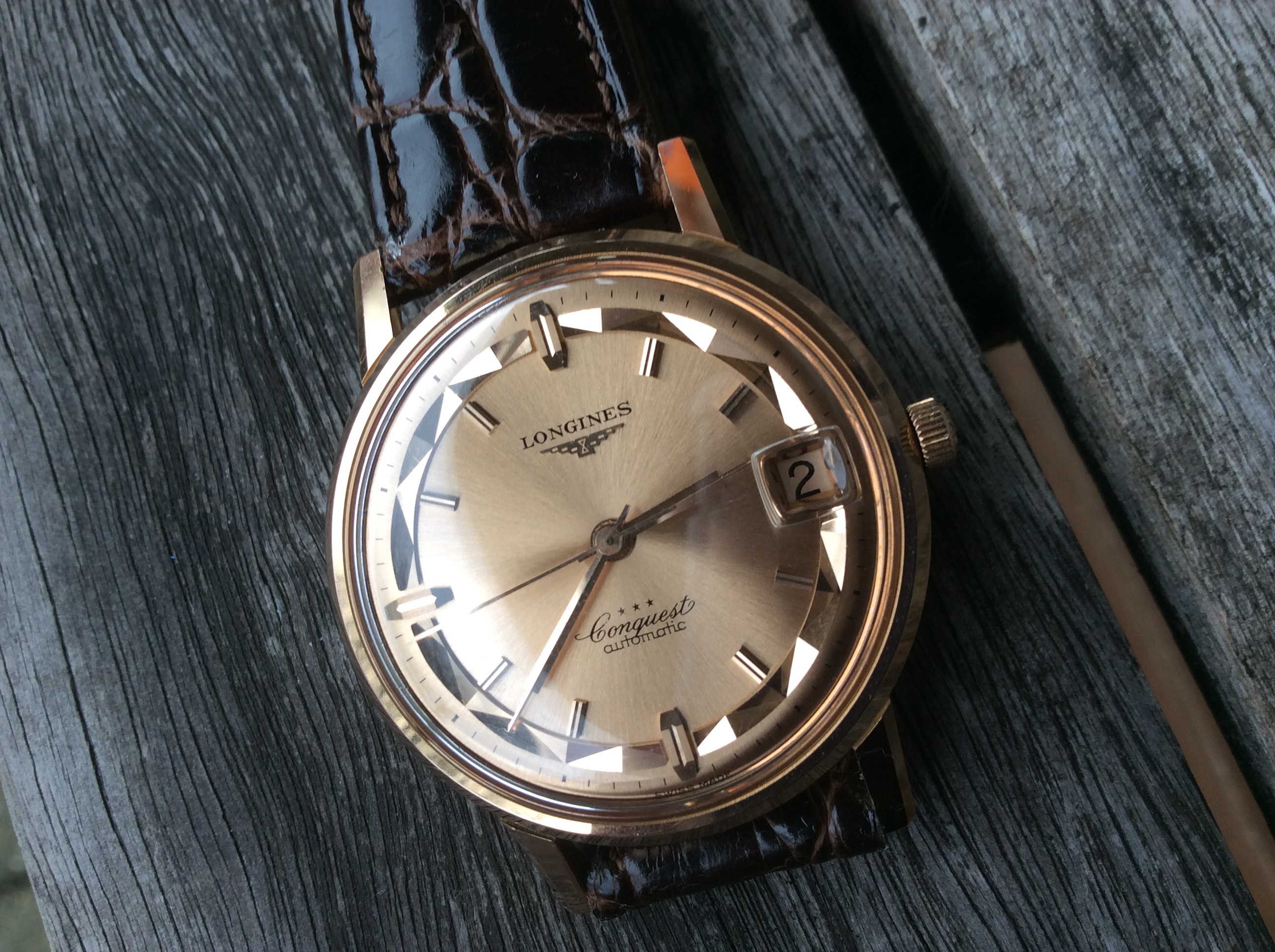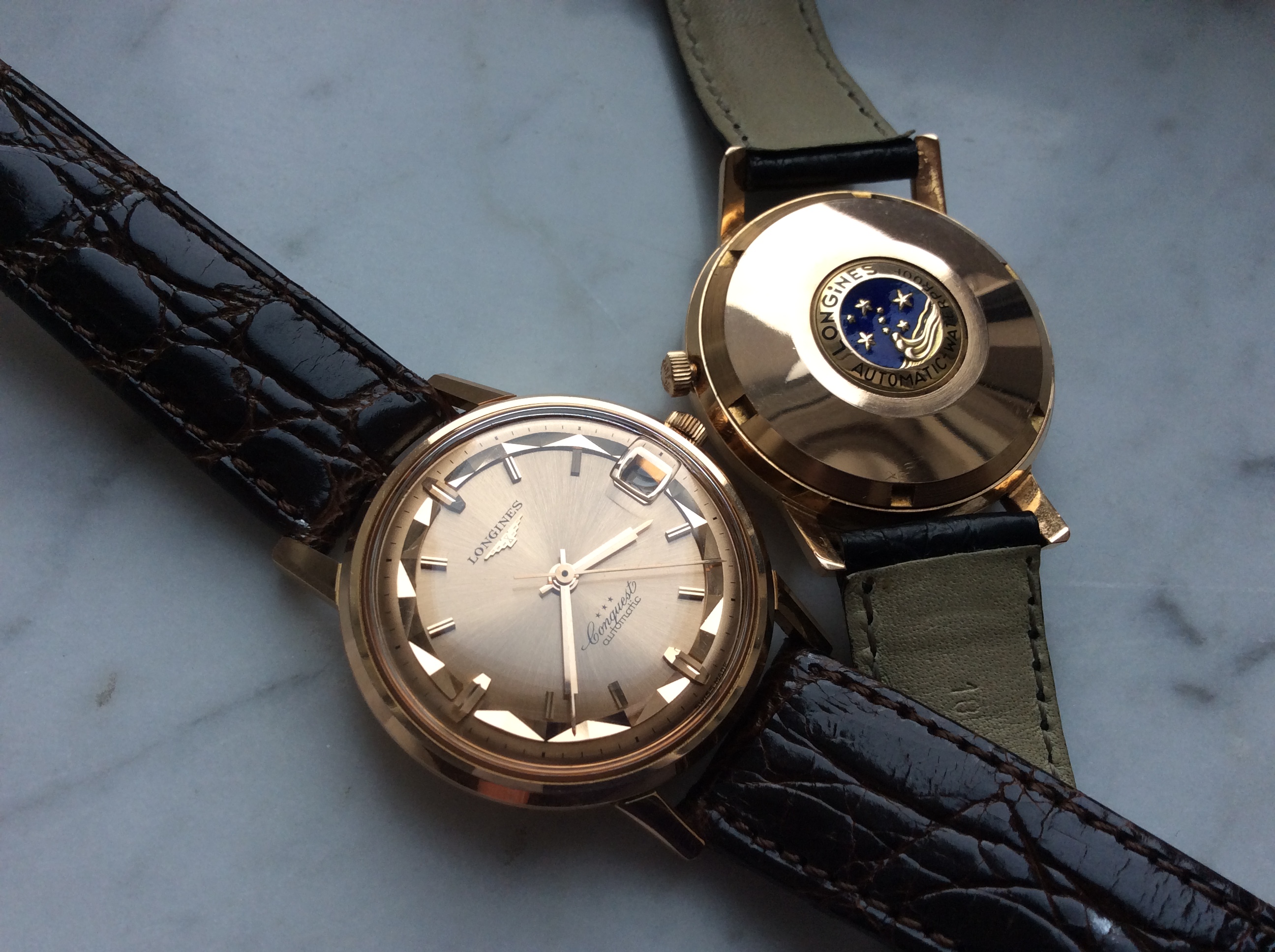 Hi all, sorry to hijack this thread but would like some information on the history on the Conquest that I recently acquired. I believe that the crown is not original and the watch itself shows very little signs of wear. Serial number on the movement indicates ca. 1960. Any feedback from anybody more qualified than myself would be very much appreciated.