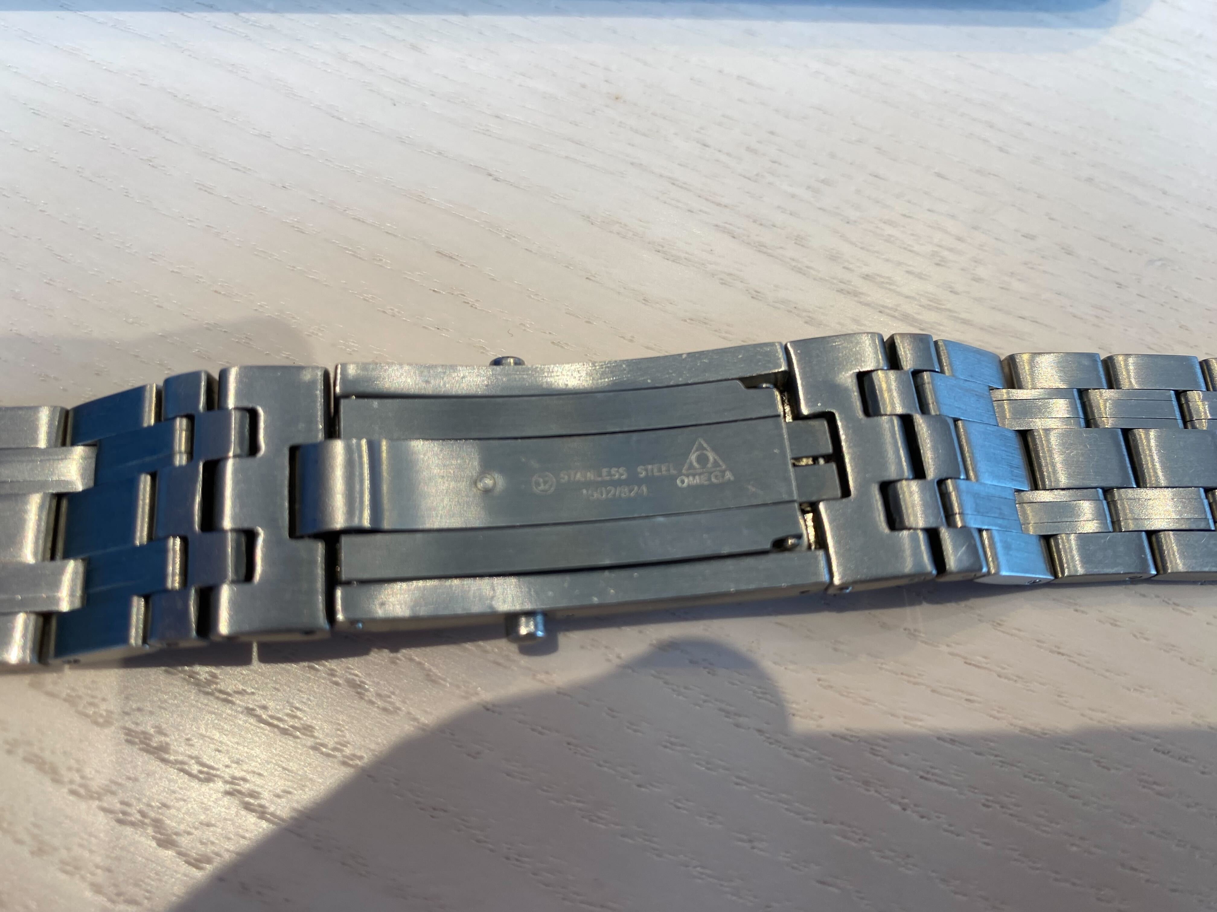 That looks like a fake bracelet to me...it appears to have split pins in it instead of the typical solid pin and tube system Omega uses. The shape of the links looks a bit off, and of course the clasp cover having Planet Ocean on it is wrong. The finish is also off...