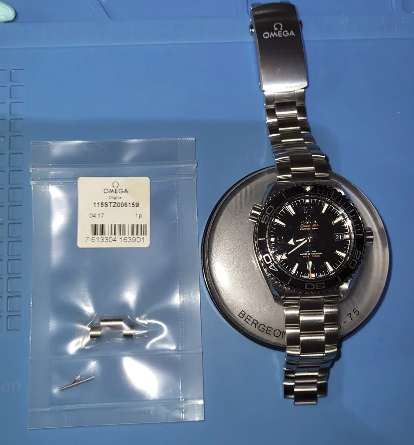ยทNot too long ago I posted my 43.5mm Planet Ocean, which was/is my first Omega watch. I love the watch and have been doing my best to wear it regularly. The fit was 95% perfect after taking out two links and I felt that taking out a third link would make the band too tight (I know it has an internal micro-adjuster in the clasp, but...๐). Forum member @avusblue posted a link about a half-link that would fit, and I ended up ordering it. The half link fits the band perfectly and is just the right size to take up the little bit of slack that kept the band from fitting exactly right. The half-link was a little expensive, but I plan on wearing the hell out of this watch, so I wanted the fit to be as comfortable as possible. And it is. ๐