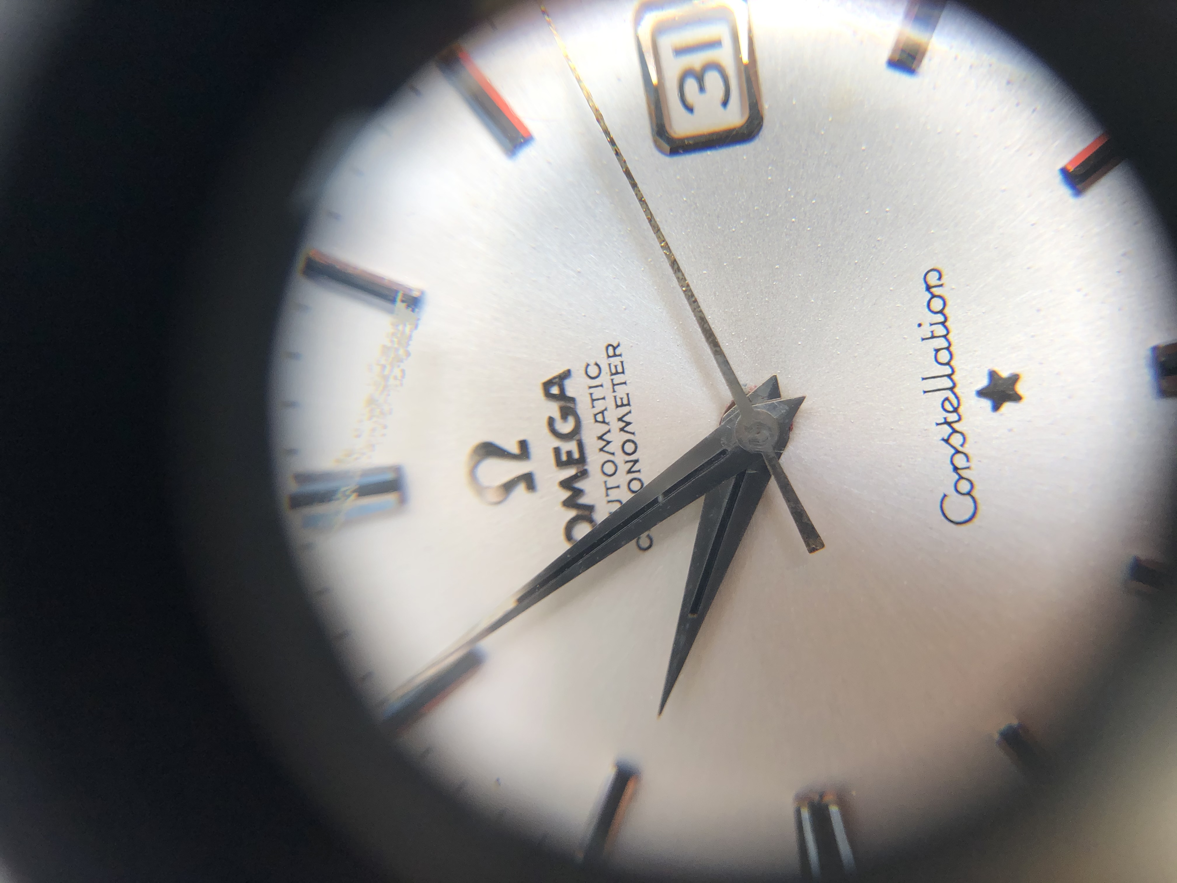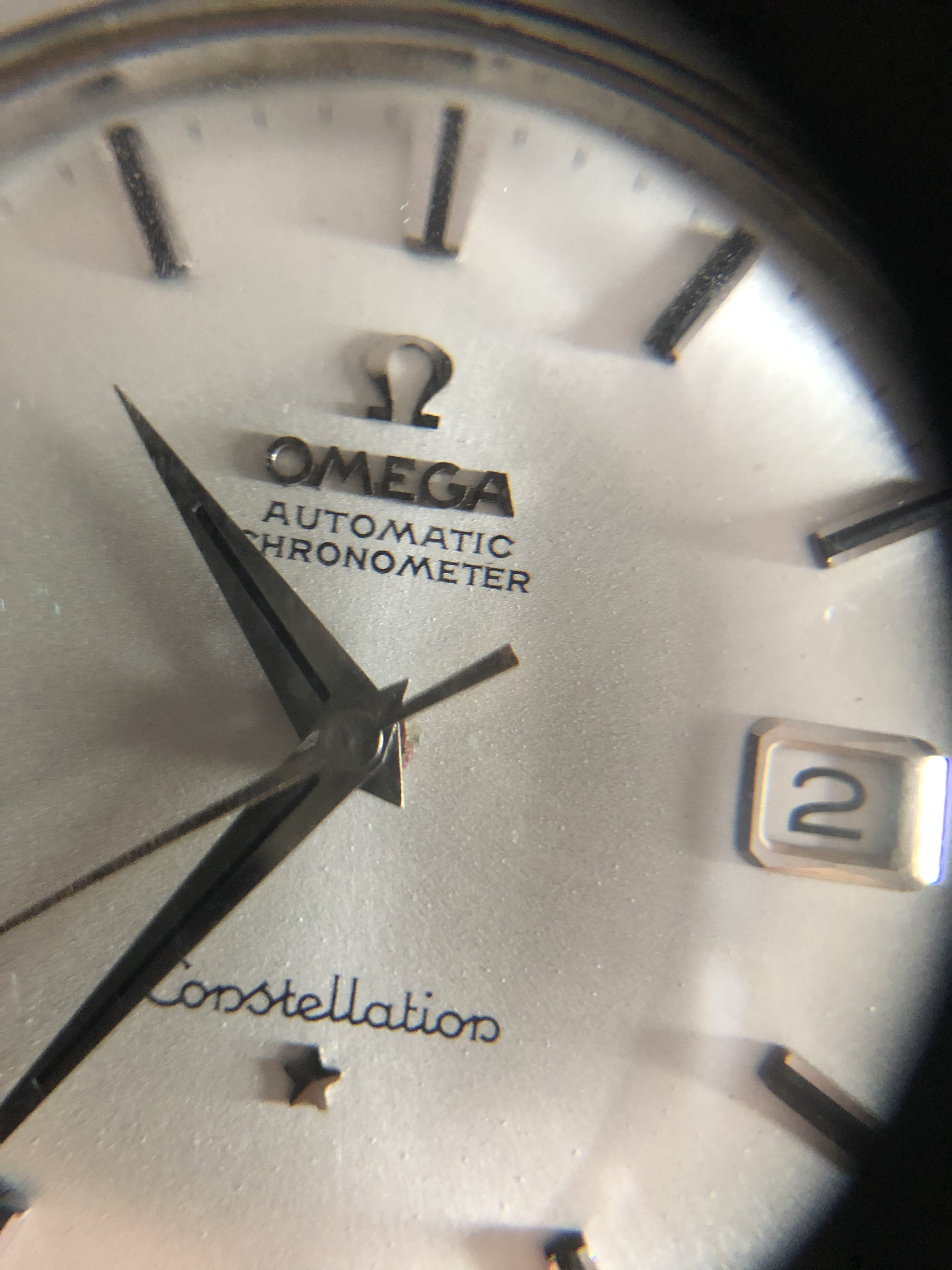 Sunburst dials are known to play with letters. See tiny lacquer bubbles on the dial? Lacquer micro-cracks and chips remember this watch is probable 60 or 70 years old.