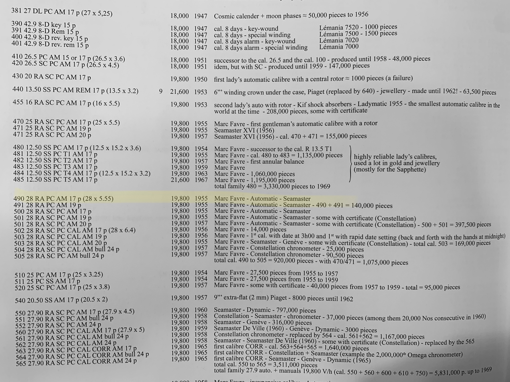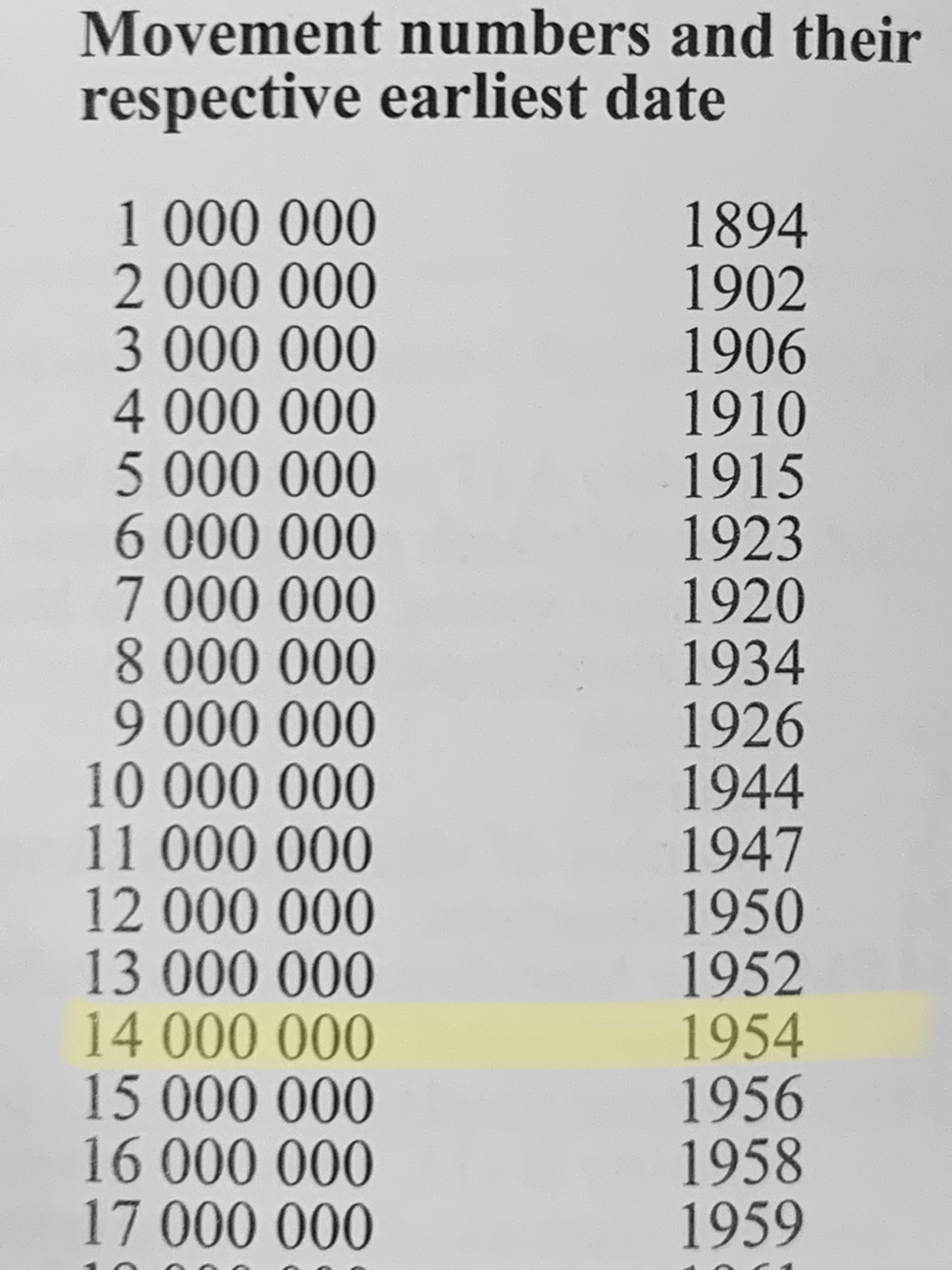 What got me confused is that the serial number 14679575 on the movement dates back to 1954, but the caliber 490 movement was only created in the following year, 1955. However, the movement image in AJTT shows a caliber 490 having a serial number of 14563001, which seems to fit with what I have. Please refer to the attached images for the information I found from AJTT.