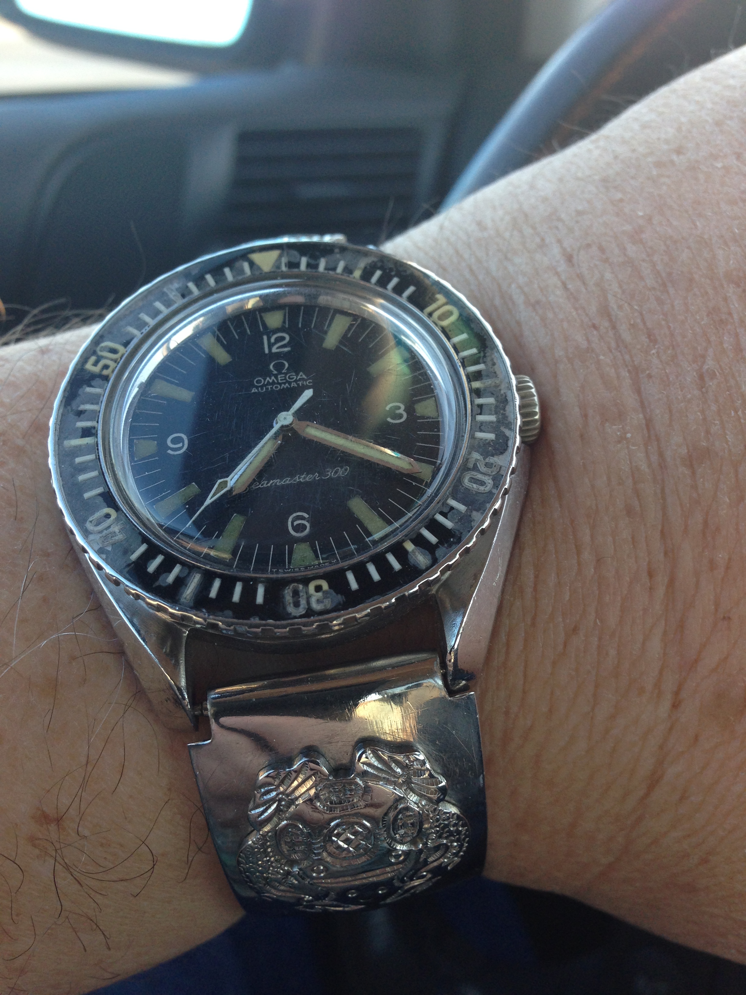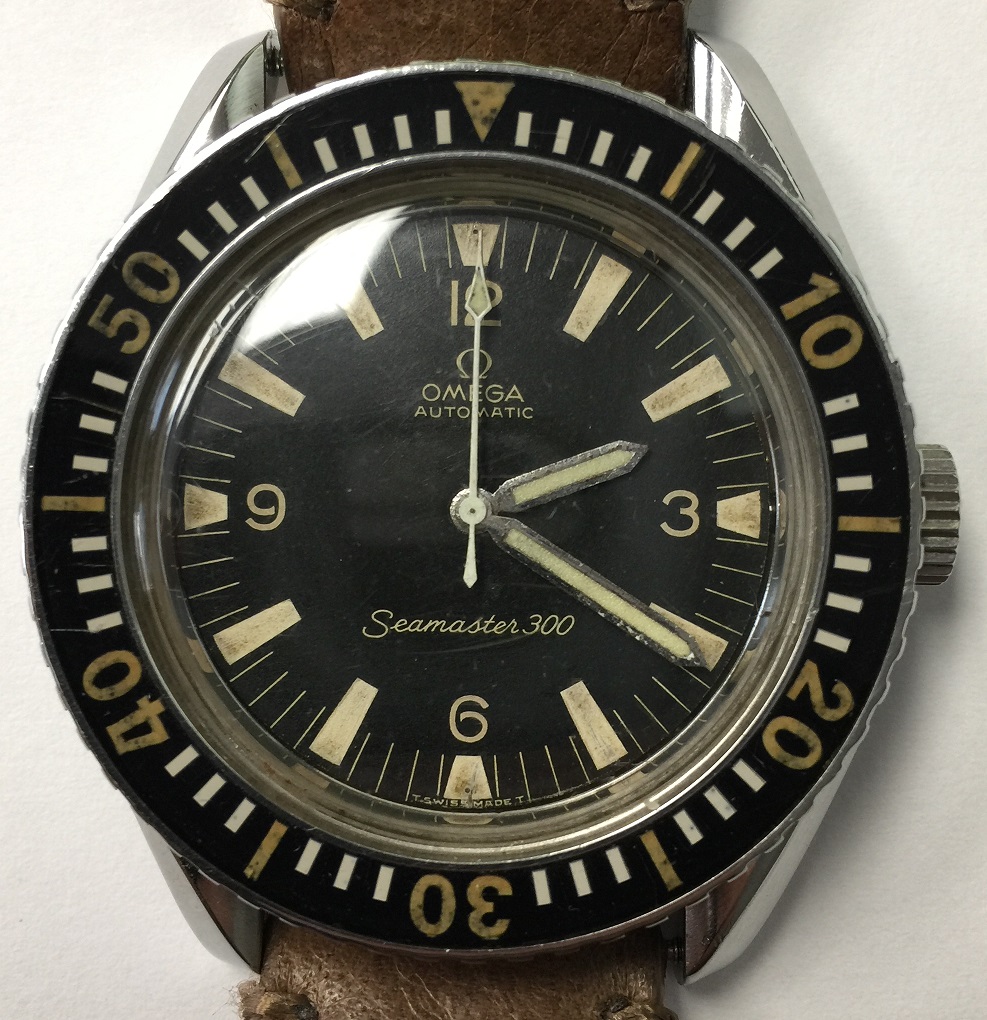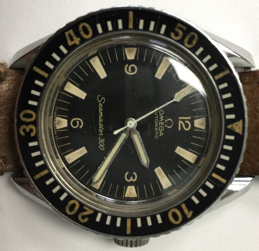 Here is a Seamaster 300, 165.024. It is a CB Case, baton hands, Movement Cal 550, Serial Number 25XXX which dates this to 1967, Lug to Lug 48mm. I have a feeling the case has been polished in the past, and hands "maybe relumed" because of slight color difference from the dial.
