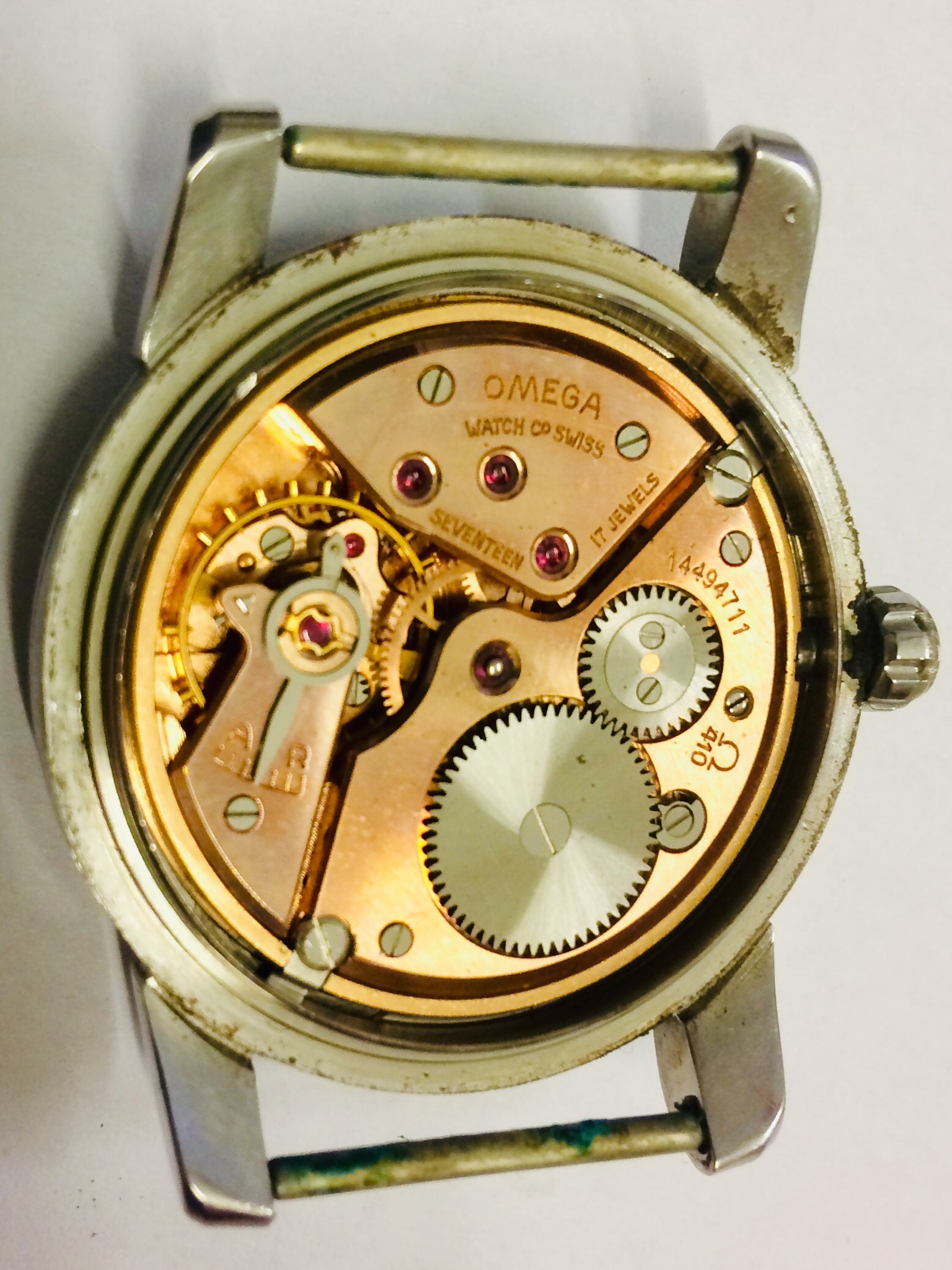 Condition: was cleaned up at an authorized Omega repair centre specializing in vintage watches three years ago. Used only a few times since. However, runs too fast (about 7 seconds per minute). Please see the pictures for exterior.