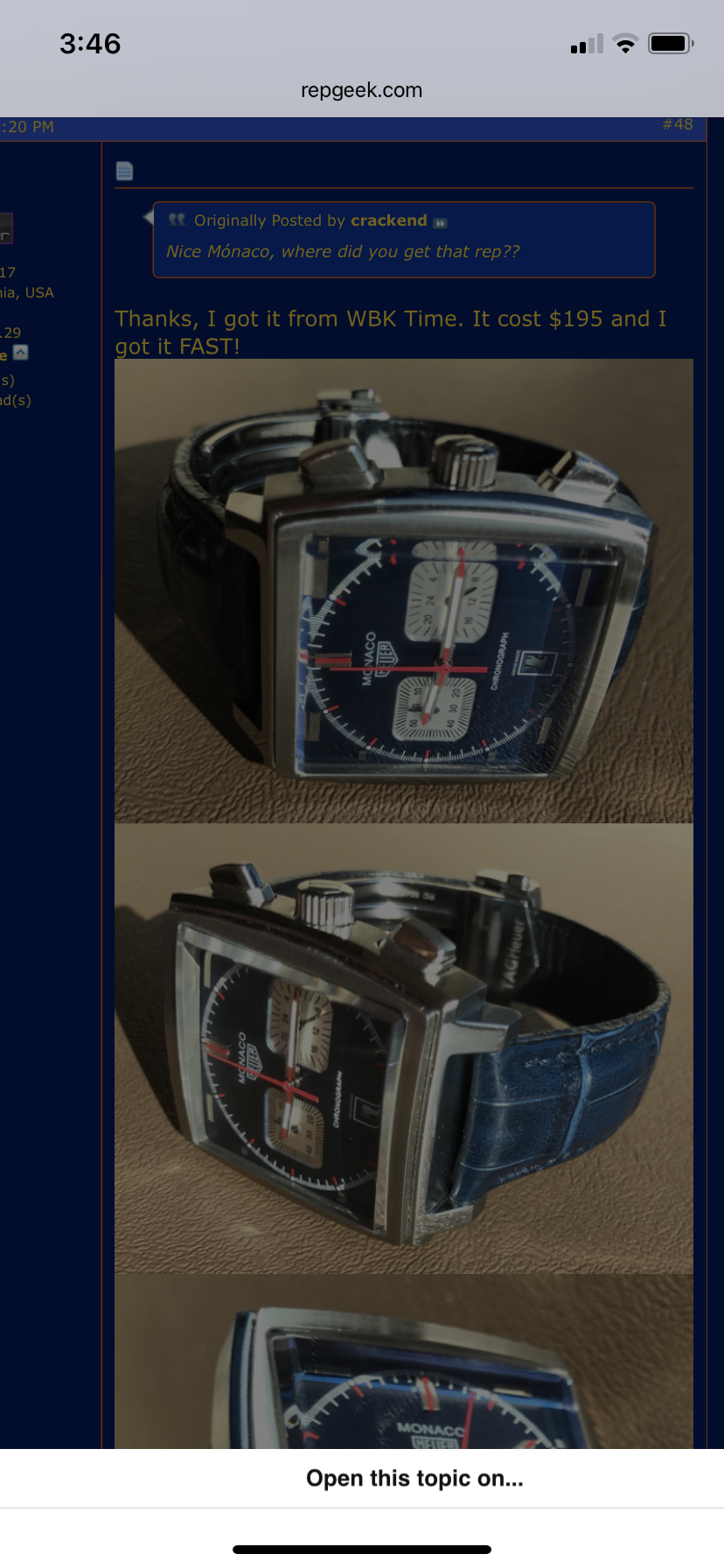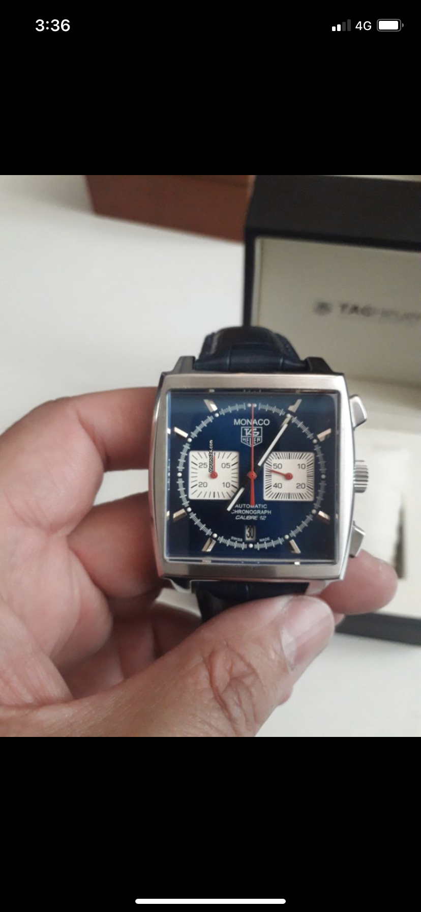 The dial on the watch from the replica forum is different then yours. Maybe look up photos of legit Monacos and compare them to yours?