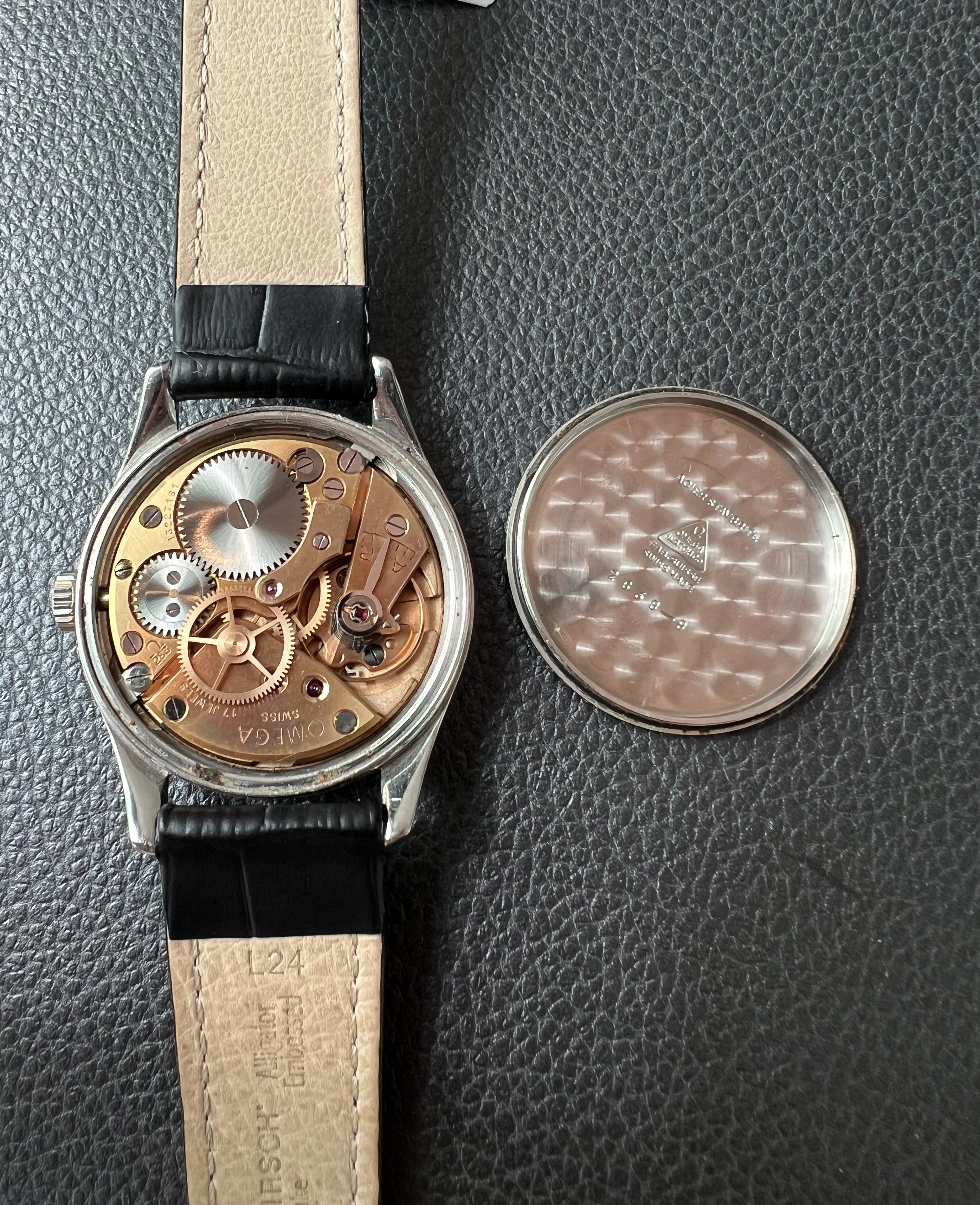 I cannot read the case reference number on the caseback in the photograph. The watch looks genuine with an original dial. However, there was some re-luming done at one point. The dots in the odd numbered markers look a bit sloppy and too white.