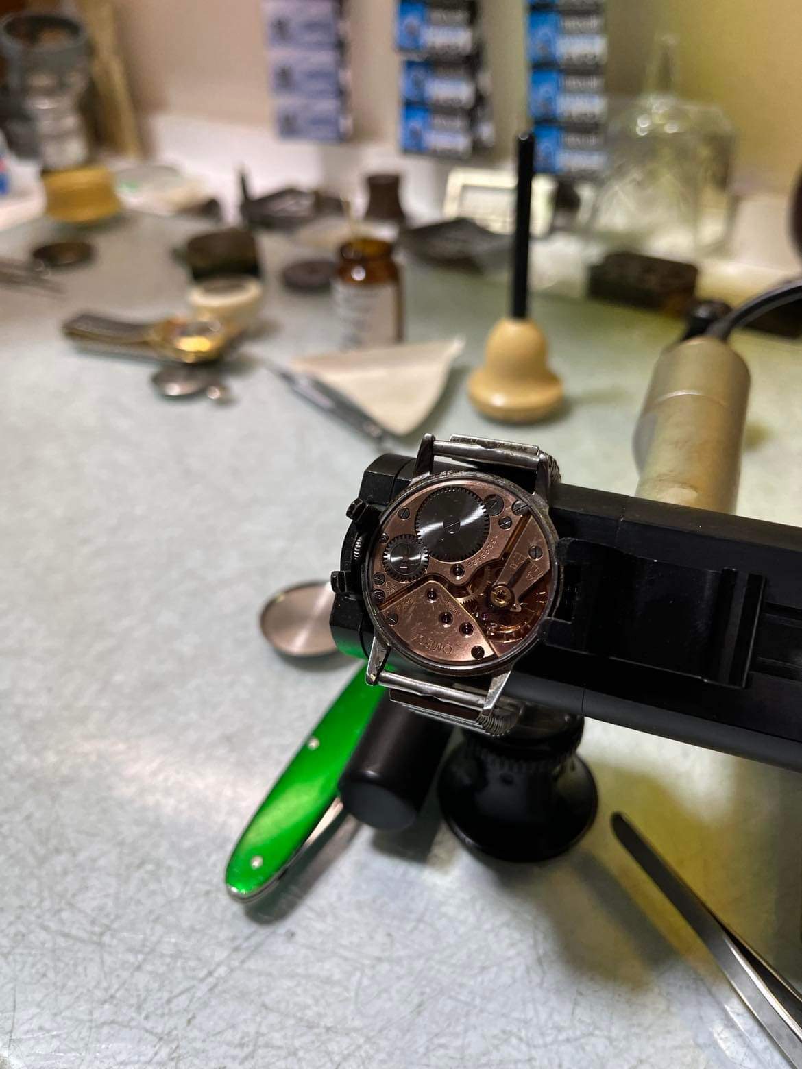I recommend flipping the watch around in the timegrapher, so the crown fits inside the recess of the spring-loaded plastic piece.