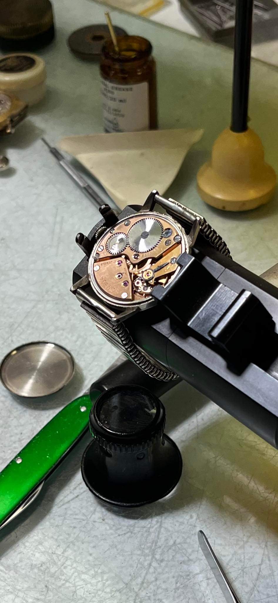 There will be a reference number inside the case-back, unfortunately I can't read it in the photos. The movement serial number indicates approximately 1956 production. Caliber 267 obviously, which is part of the venerable 30mm movement family.