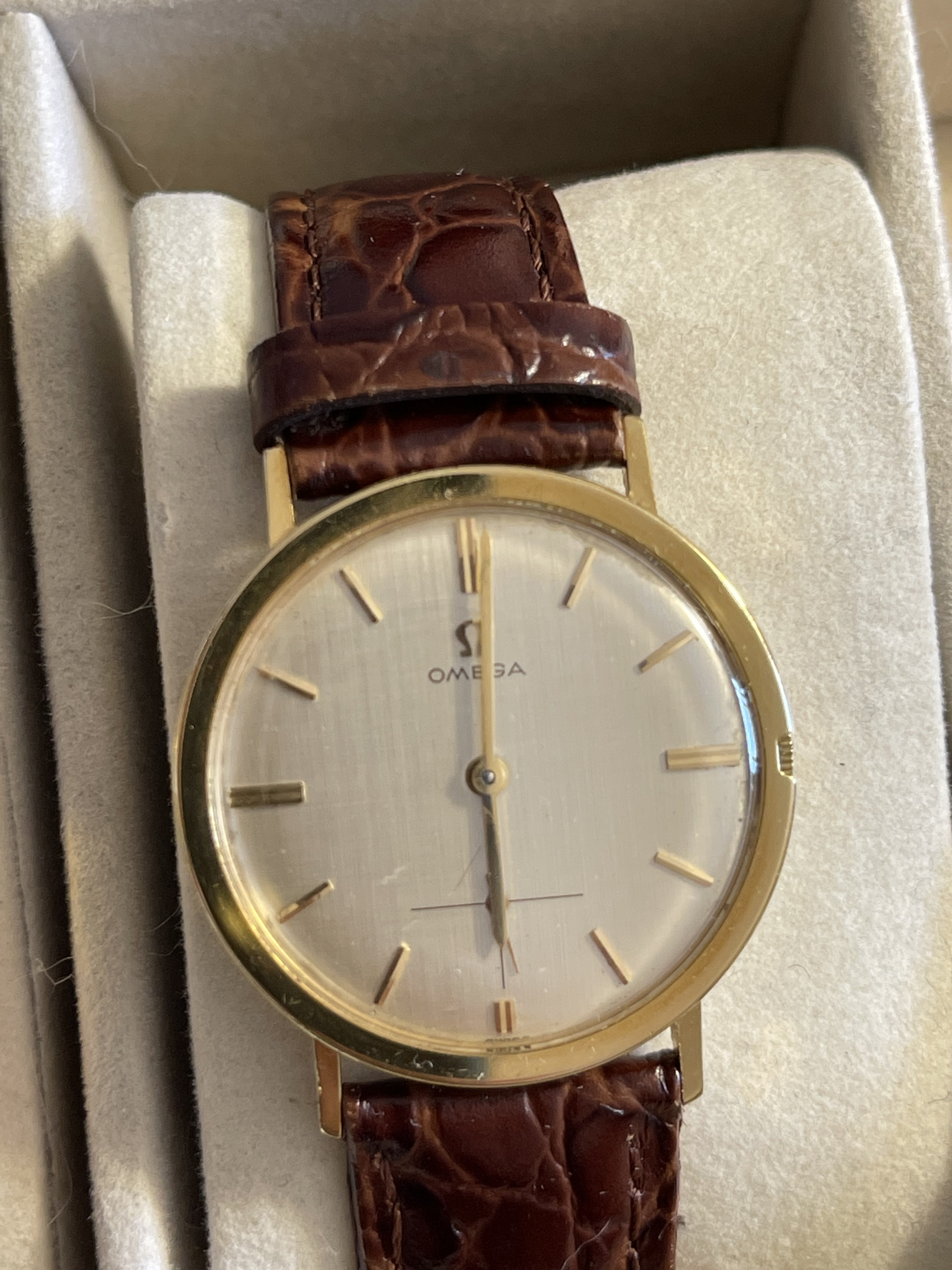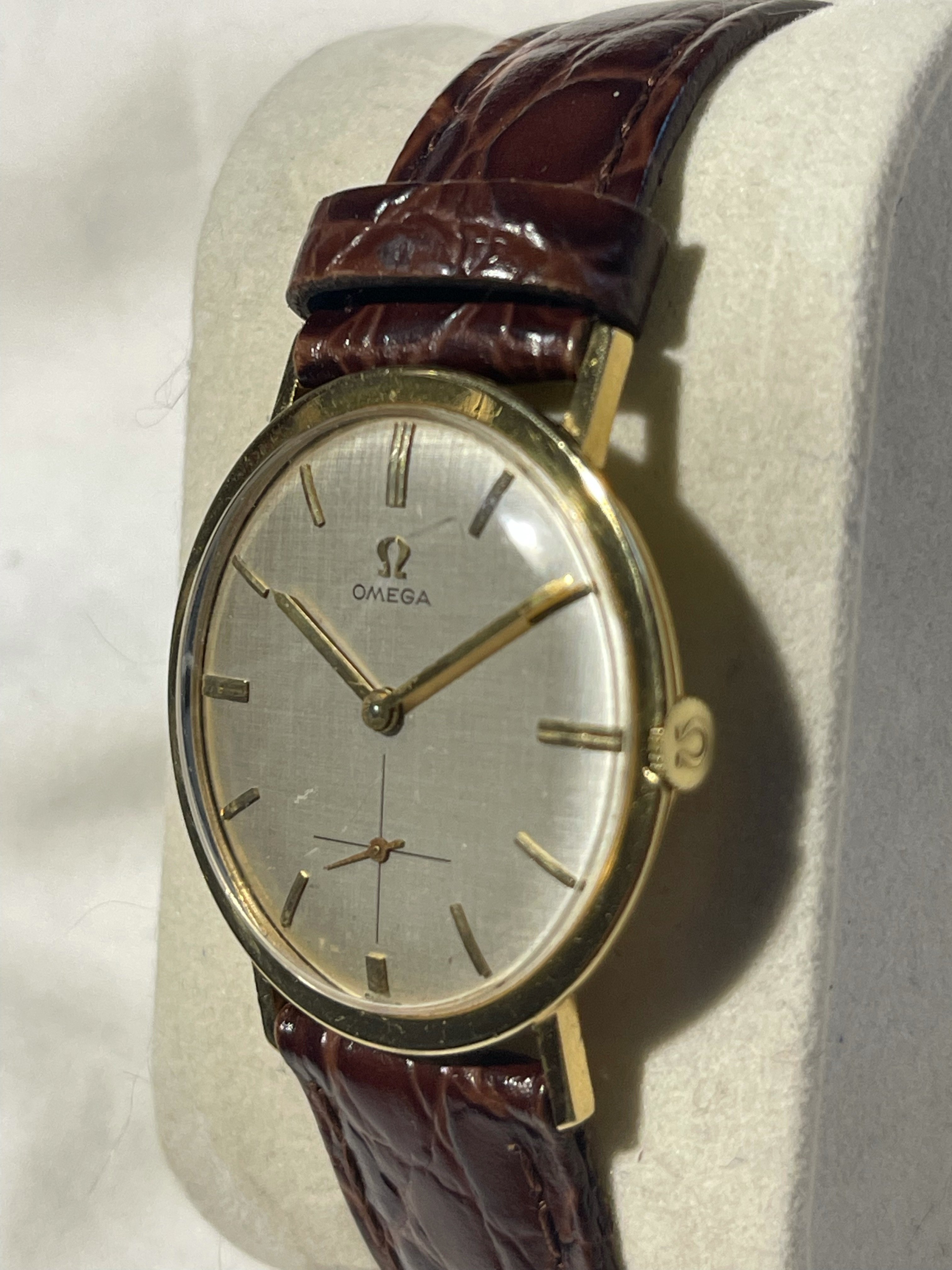 Posts 489 Likes 2,018 ckhaing ·Aug 4, 2021 Manual wind, got from ebay a while ago. Unknown reference. 18k YG case, not sure if it is omega vs third party non-swiss. Not sure if the linen dial is redone. Probably there is a damage / scratch mark as well. Please help identify year / reference. Edited: Aug 4, 2021