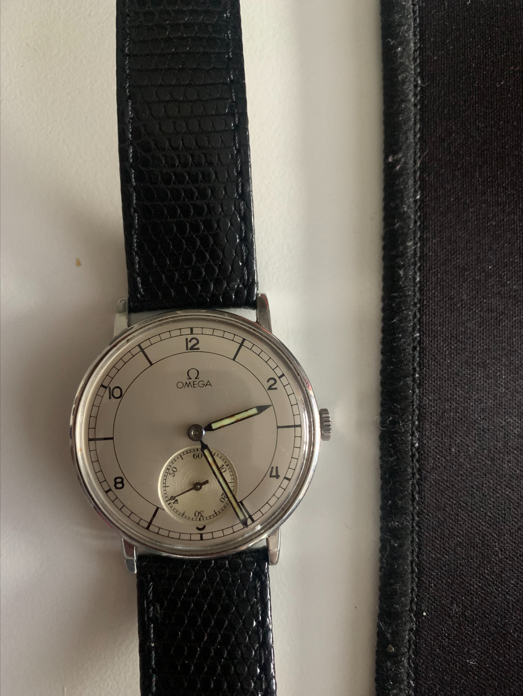 As noted above, the dial was apparently re-painted at some point given the mis-match of the dial font and age of the watch. The hands are also mismatched with the dial, but that could be because the dial was changed when repainted. It's hard to say.