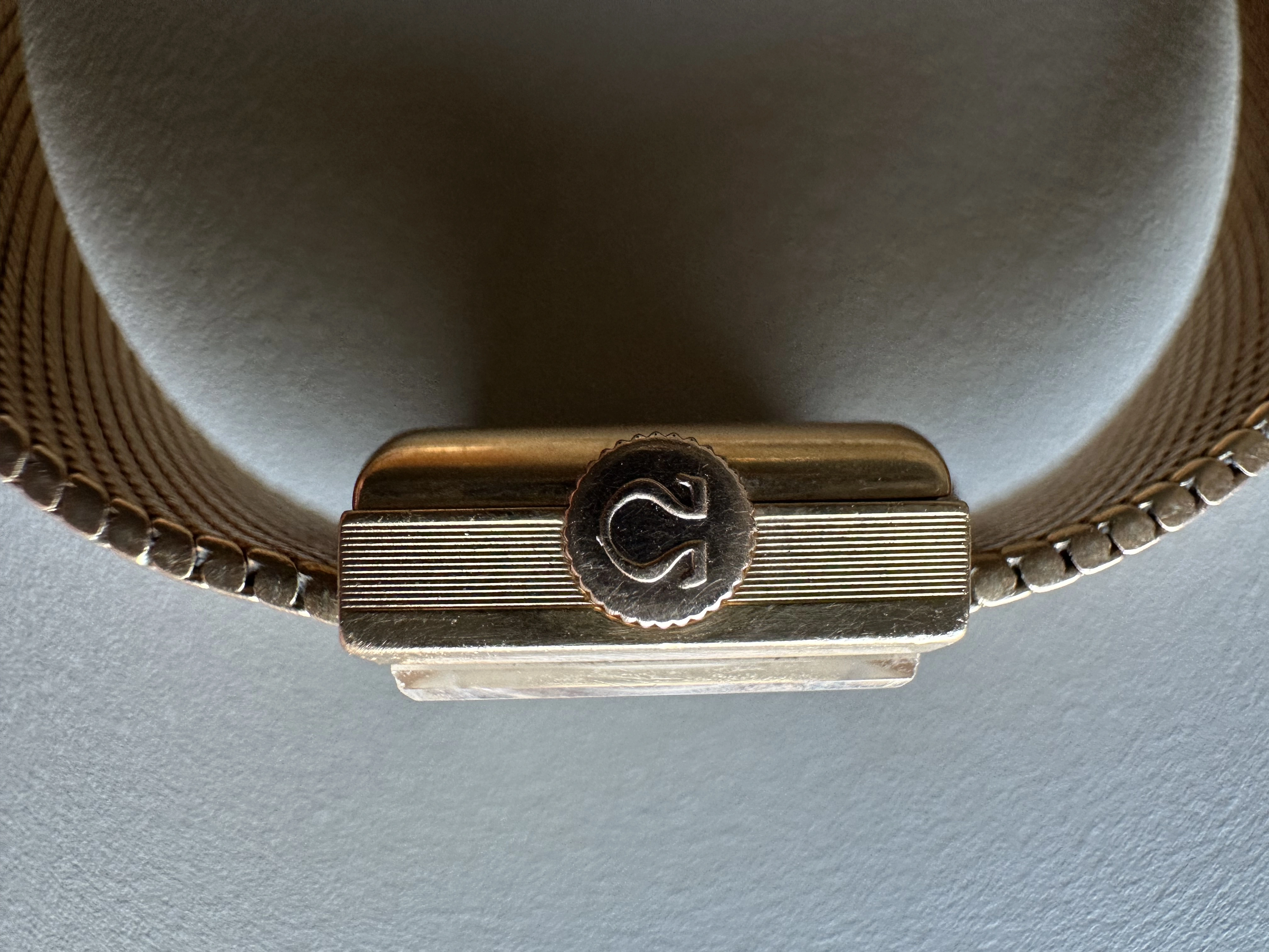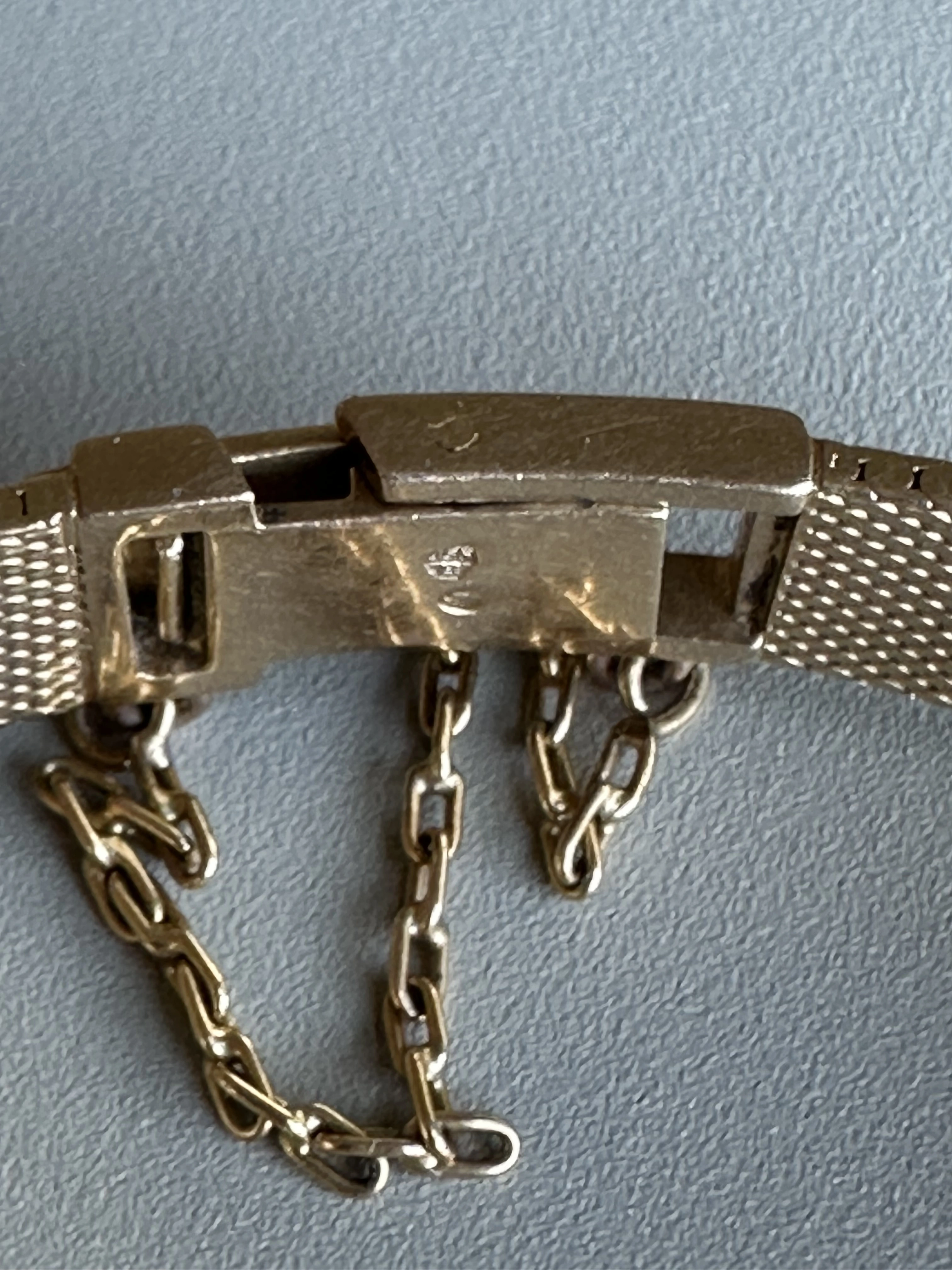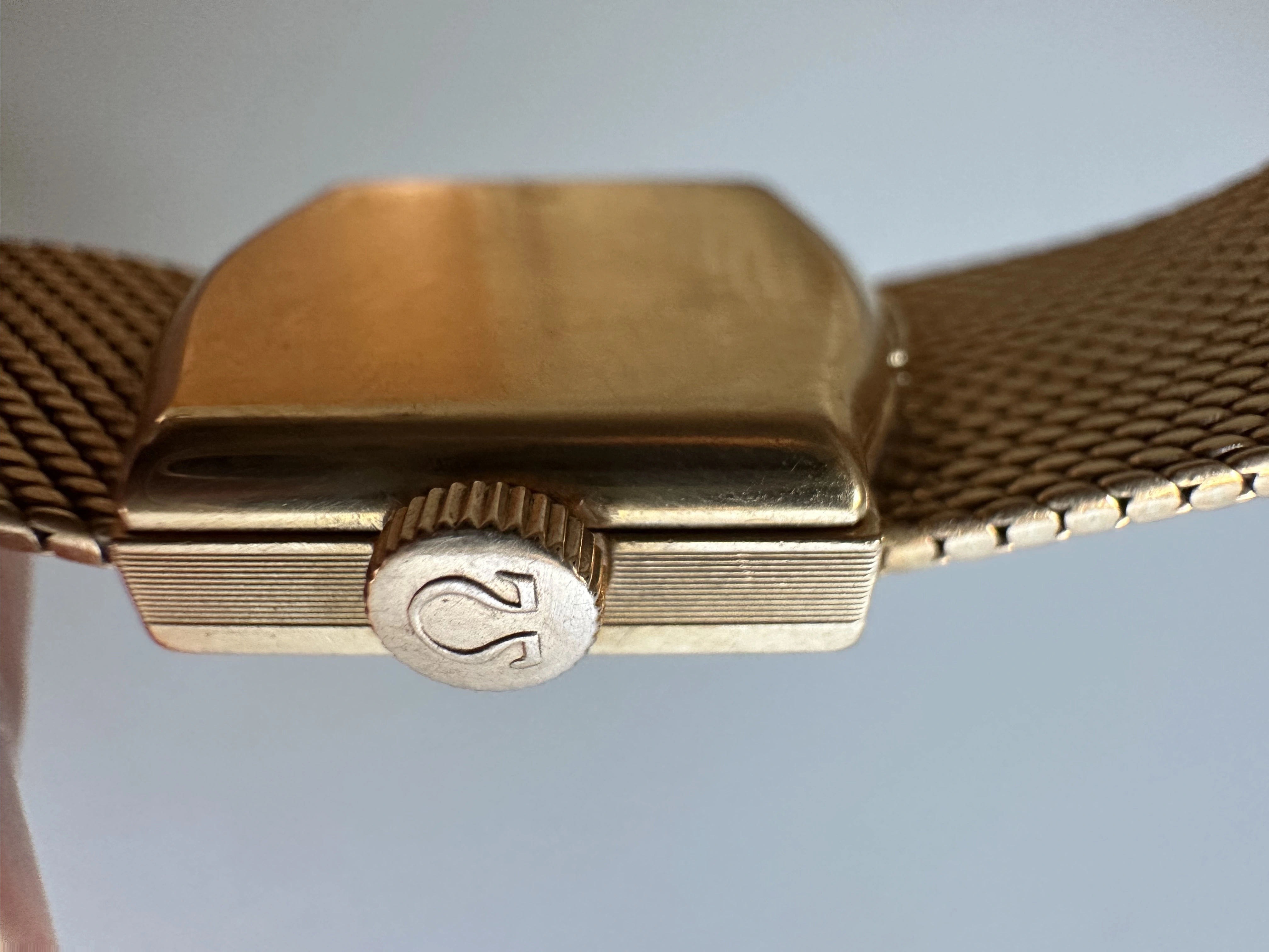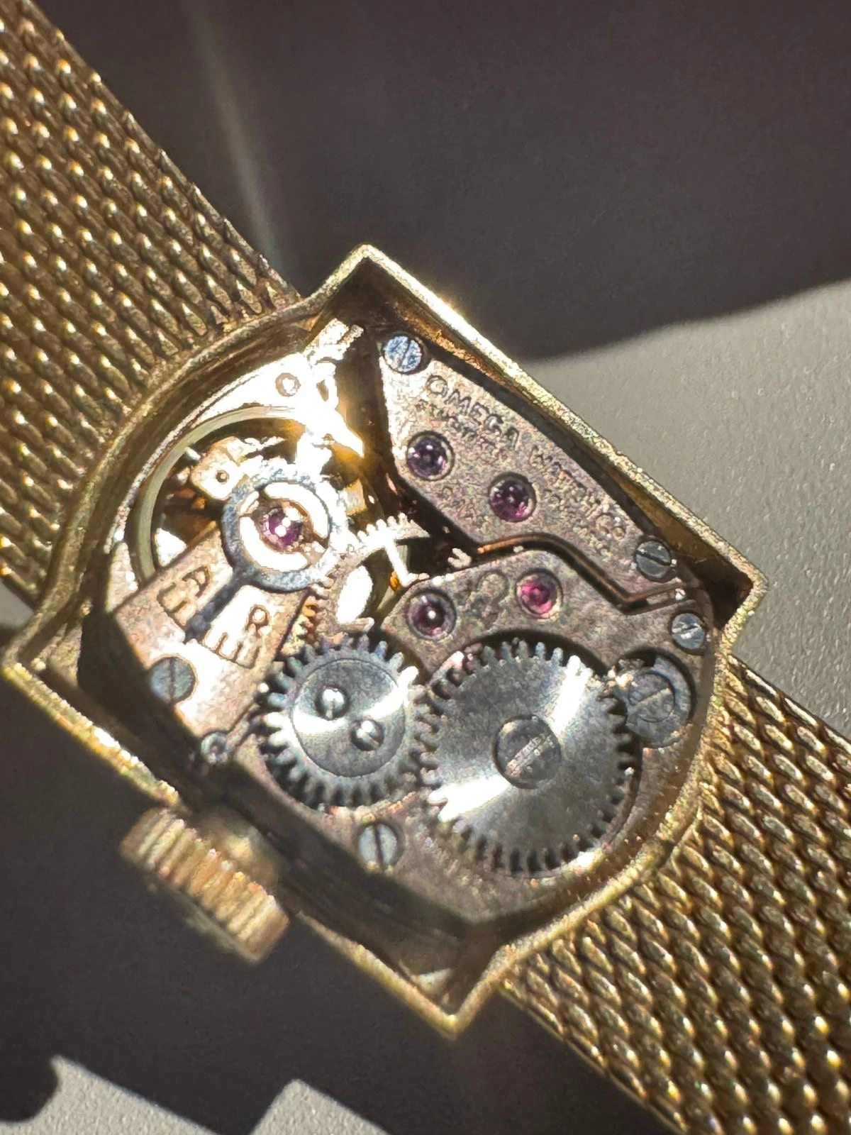 It looks to be a genuine Omega "Ladies Cocktail Watch" in solid gold, possibly 18 carat, but I can't see the hallmark clearly.