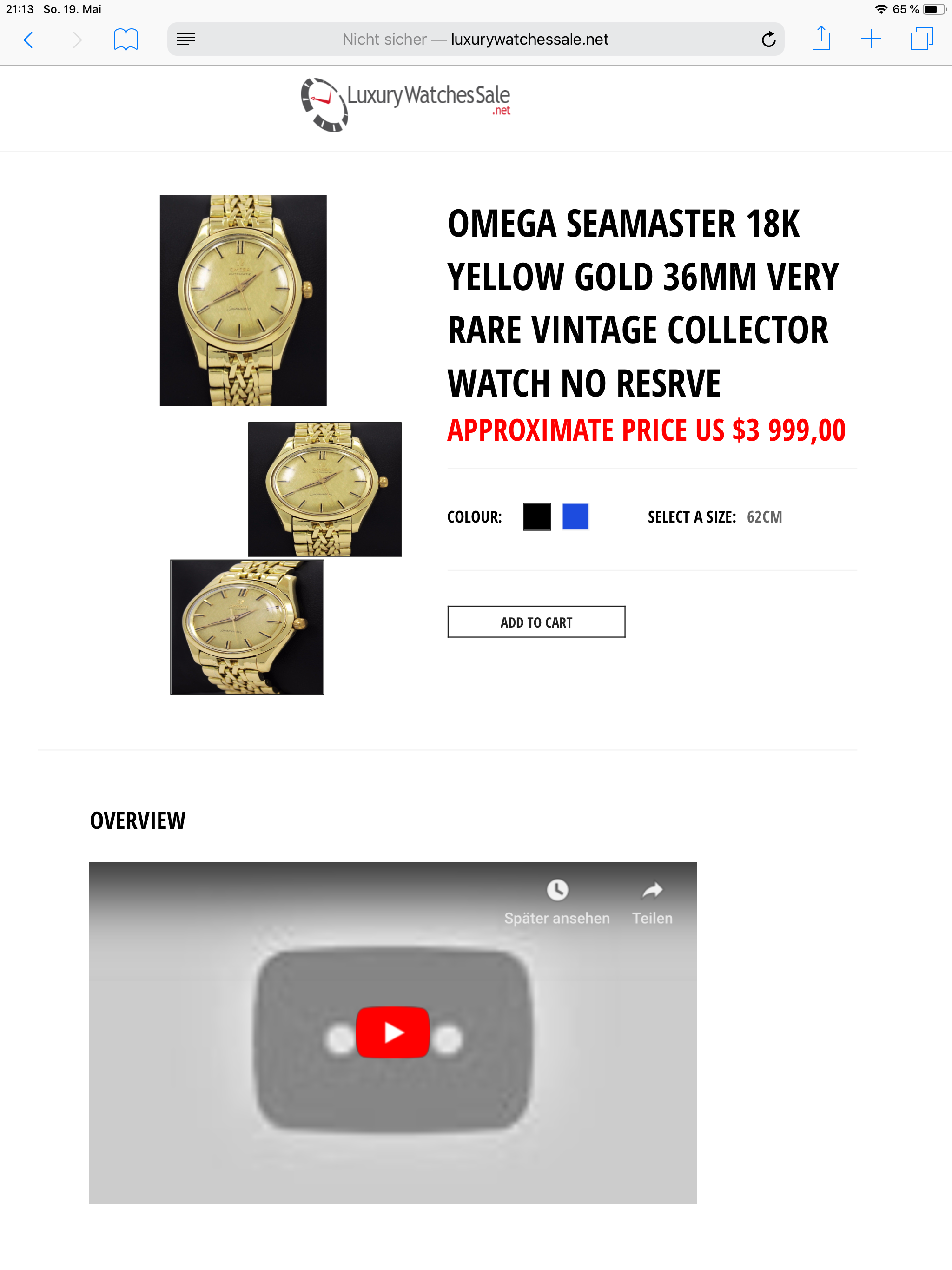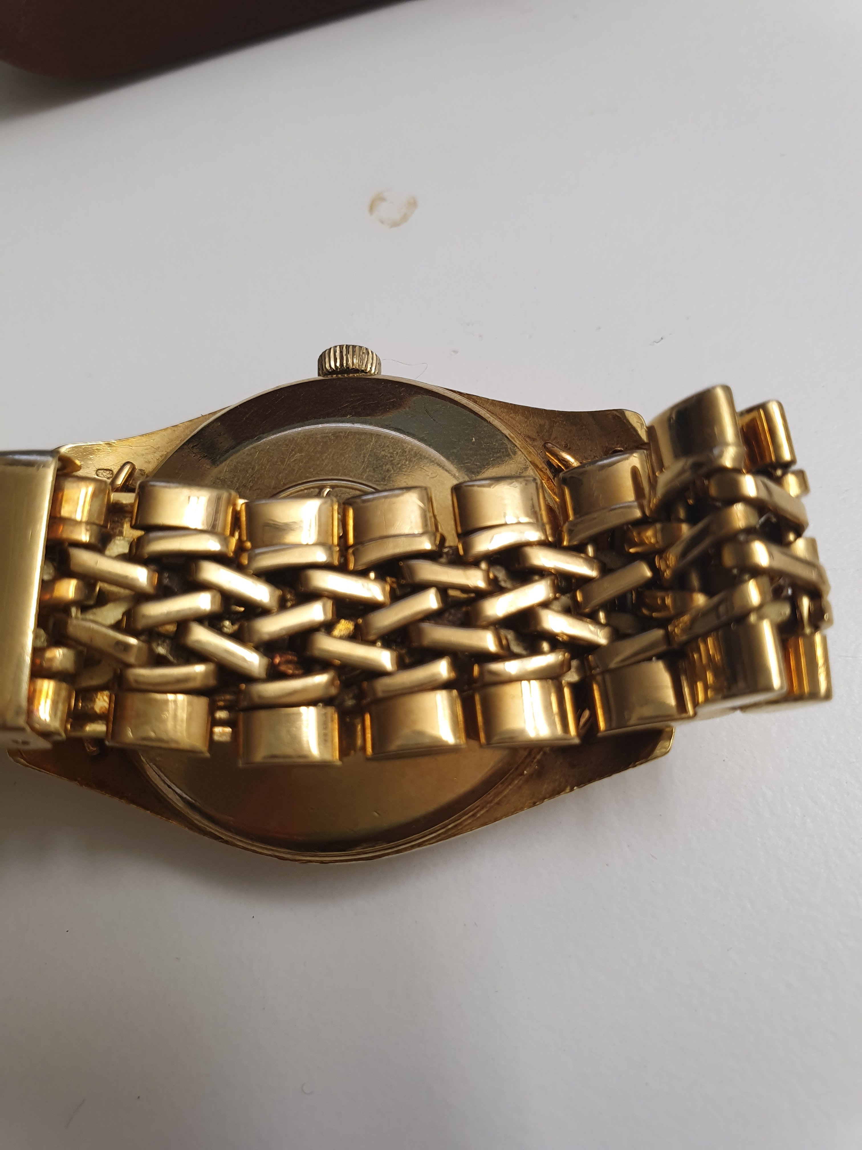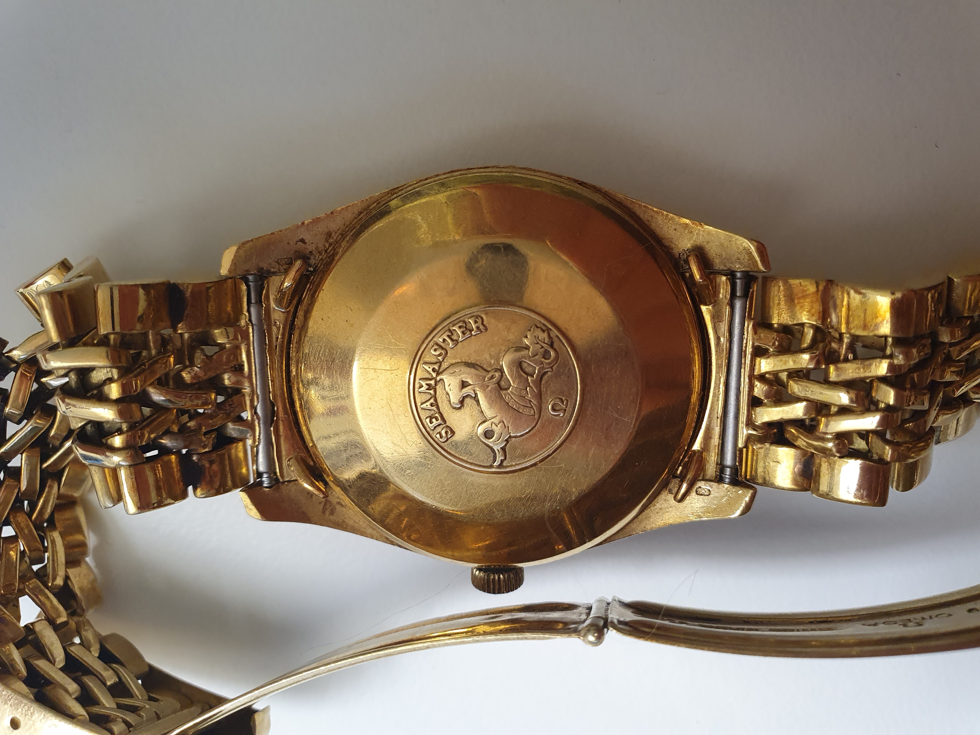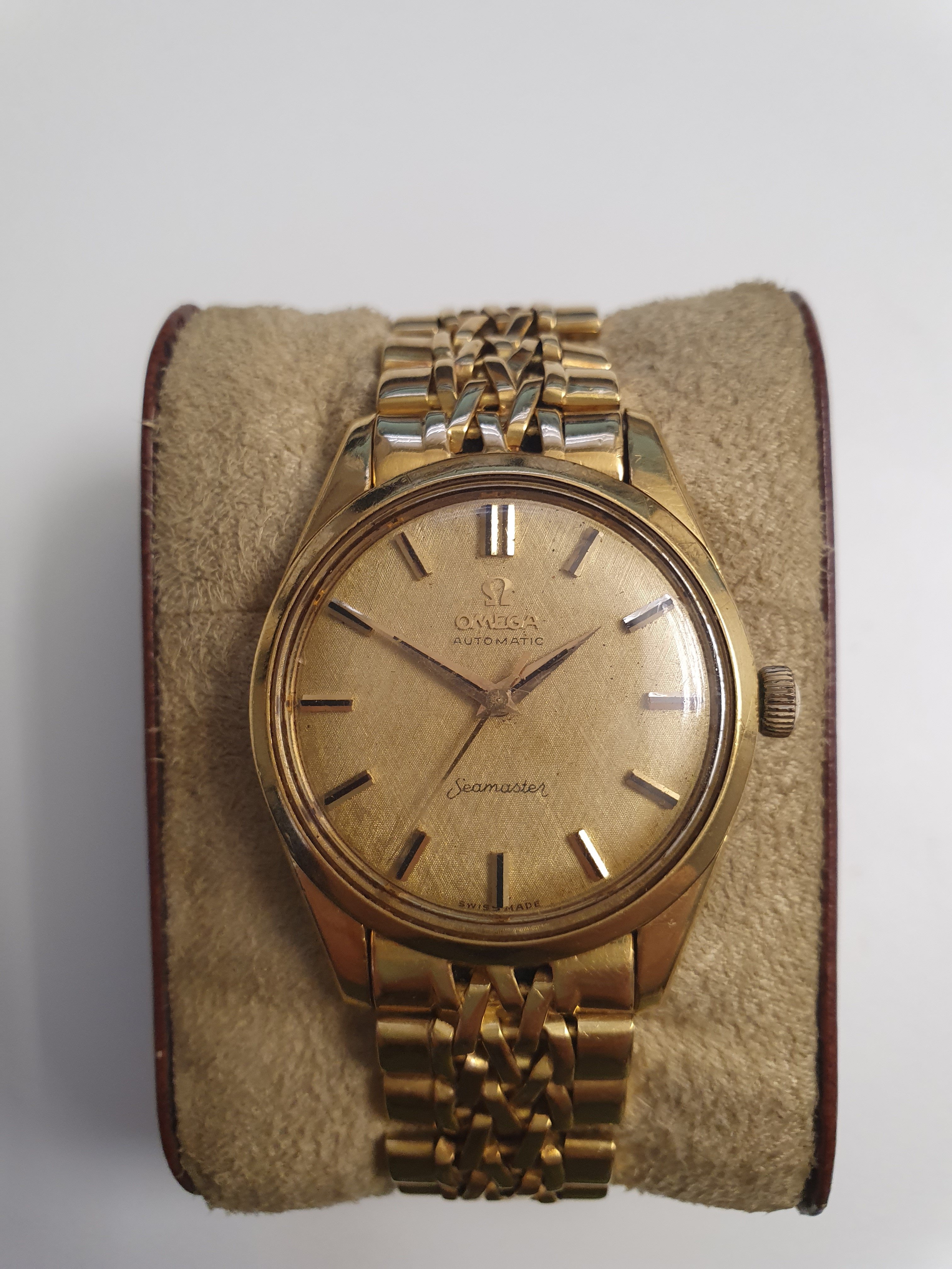 I would like to ask for your help in identifying this watch. Firstly, the story: The watch belonged to my grandfather, who owned it for several years. After his death, my father inherited it in 1996. After my father's death, I inherited this watch in 2013. Although I have tried several forums, I have not been able to identify the watch. It is an Omega Sea Master in 18 kt gold. The watch is made entirely of gold, including the dial. Diameter 35 mm and lugs 18 mm. An important point here is the bracelet with a clasp that also bears the Omega mark. Unfortunately, the bracelet has worn out and there have been many discussions about it. In a forum where I posted the pictures of the watch, it was said that it is an original Omega bracelet. Again, the watch dealers I contacted were not sure. However, in 2013 I found a dealer in America who offered an identical watch with this bracelet on his website (see screenshot). As far as I can see, it is a Sea Master Special reference number OT 14763 but without the date display see Omega Page: https://www.omegawatches.com/de-de/watch-omega-seamaster-special-ot-14763. Unfortunately, I could not find the identical model on Omega Vintage Watches. Can someone in this forum help me and tell me which watch it is?