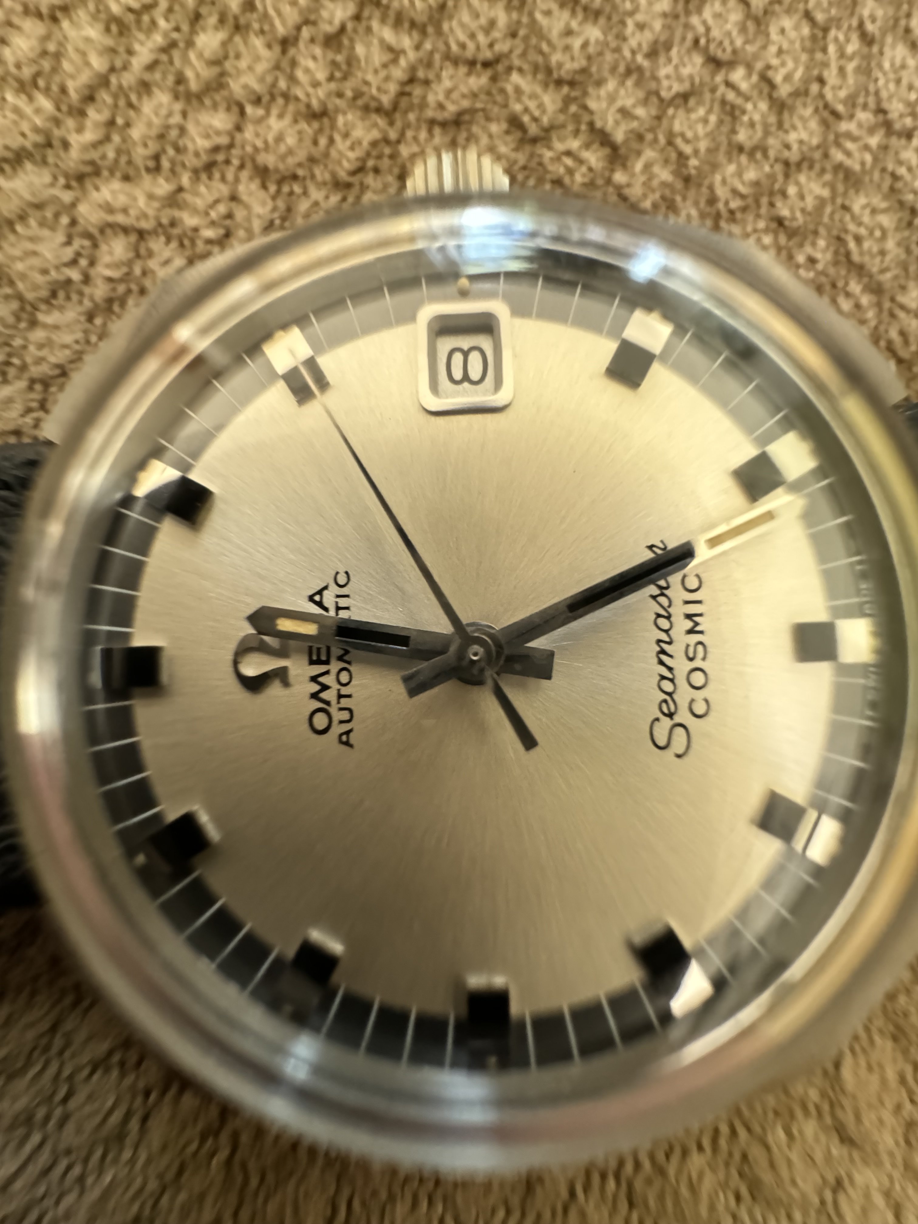·Im new to the forum and I’m thinking about buying my first vintage Omega but am new to vintage watches and don’t want to end up with the dreaded Frankenwatch of an outright fake. In researching the watch I’m interested in it appears to be a Seamaster Cosmic from the 60’s. The seller is claiming that it was bought at an estate sale and everything is 100% original. The dial is different than what is shown on the Omega website but I see others online with the same reference and this dial. Is this a variant? Or maybe a redial? The original band with these from the best I can find would be leather. The pictures the seller provided are of a leather band and there are Omega markings but one side says waterproof. Waterproof leather in the sixties doesn’t sound right. Please let me know if you think this is authentic and original. Also any tips on what to look for would be greatly appreciated. Thanks.
