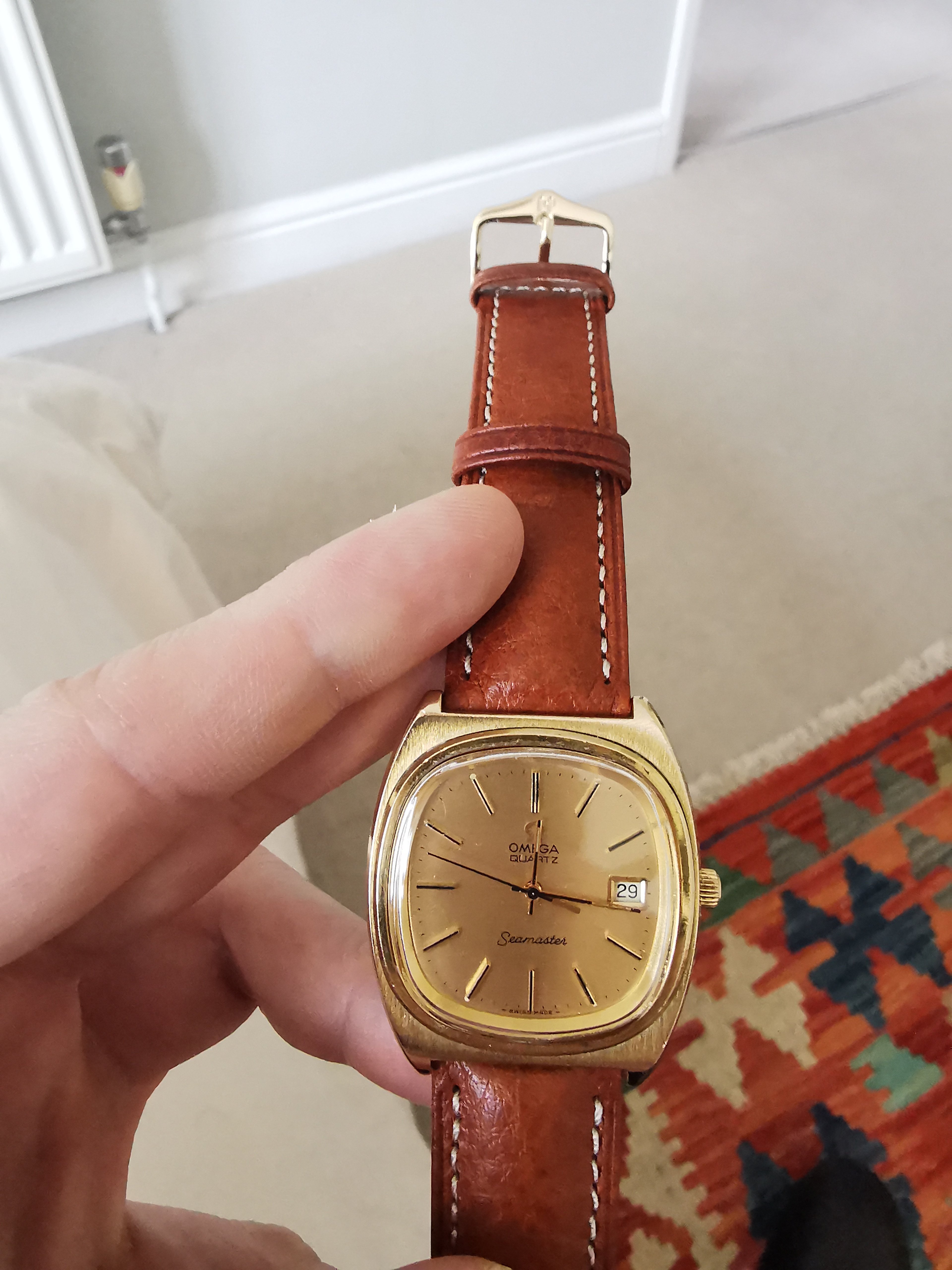 The watch you have purchased is known as a "quartz movement" watch, so-called because it uses a quartz crystal, a battery, an electronic chip, and some tiny motors to tell you the time and keep track of time after you set it. It appears to be a genuine Omega watch and will likely serve you well as a timekeeping device once you put a fresh battery inside.