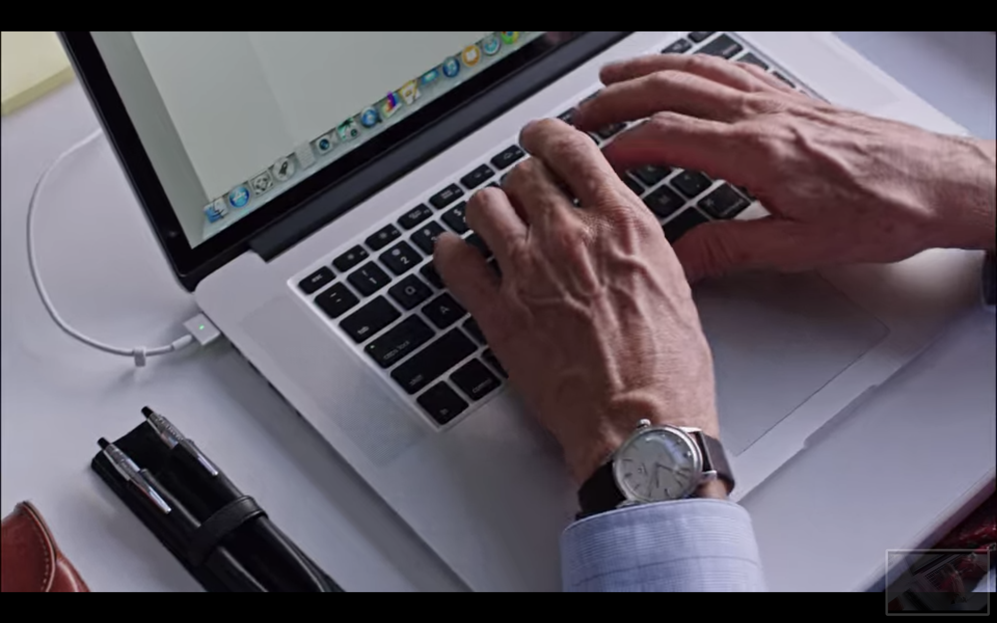 I just watched The Intern last night. Anne Hathaway prominently wears a Cartier Tank and Robert De Niro wears what I believe is a 135.003 Seamaster 30 (the screenshot is poor because apparently Chrome can only do 720p, it's easier to see on a TV):