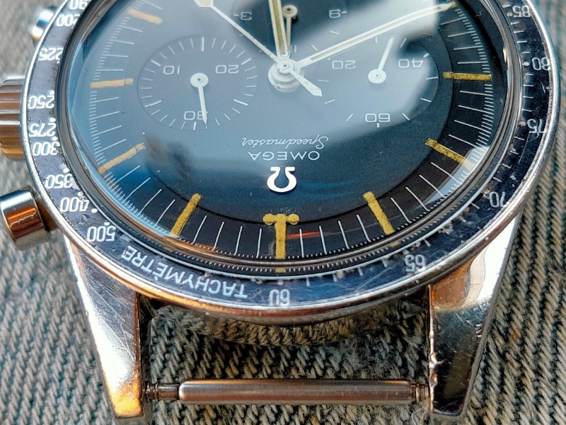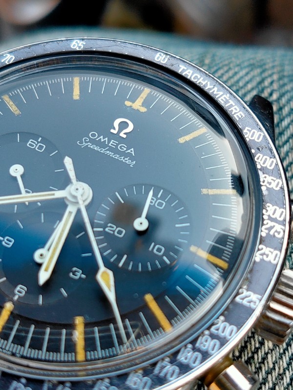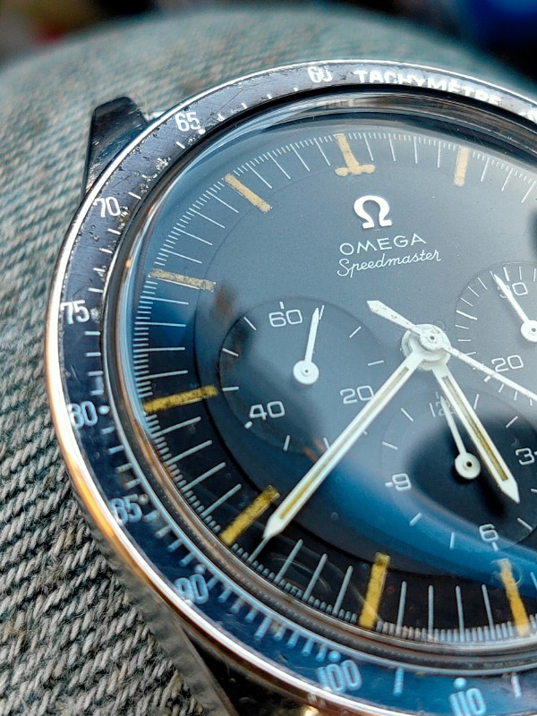 ・The dial is clean. The indexes are a little darkened from 7 to 10 o'clock. However, it is generally clean and there are no chips. There are no chips on the hands.