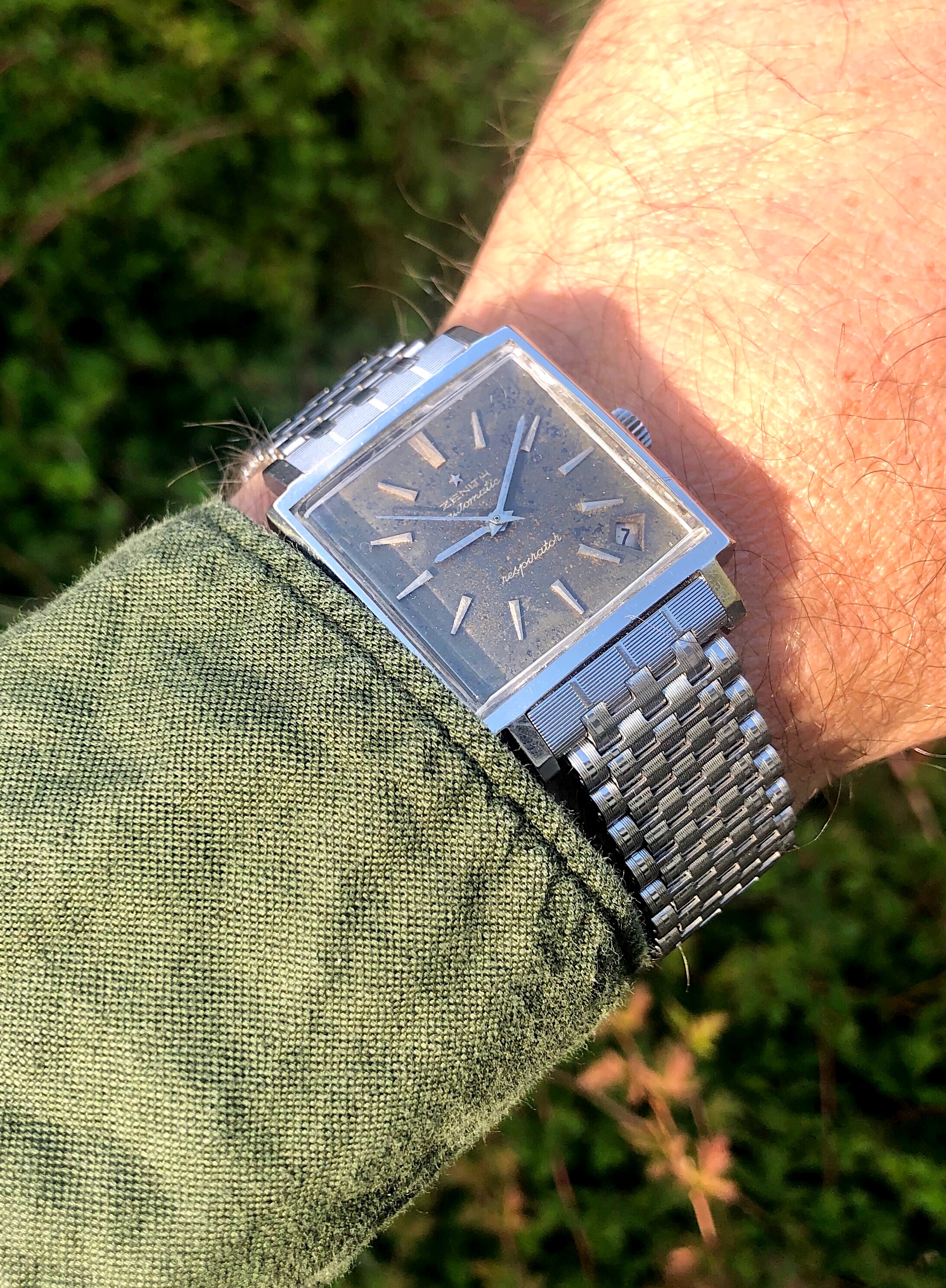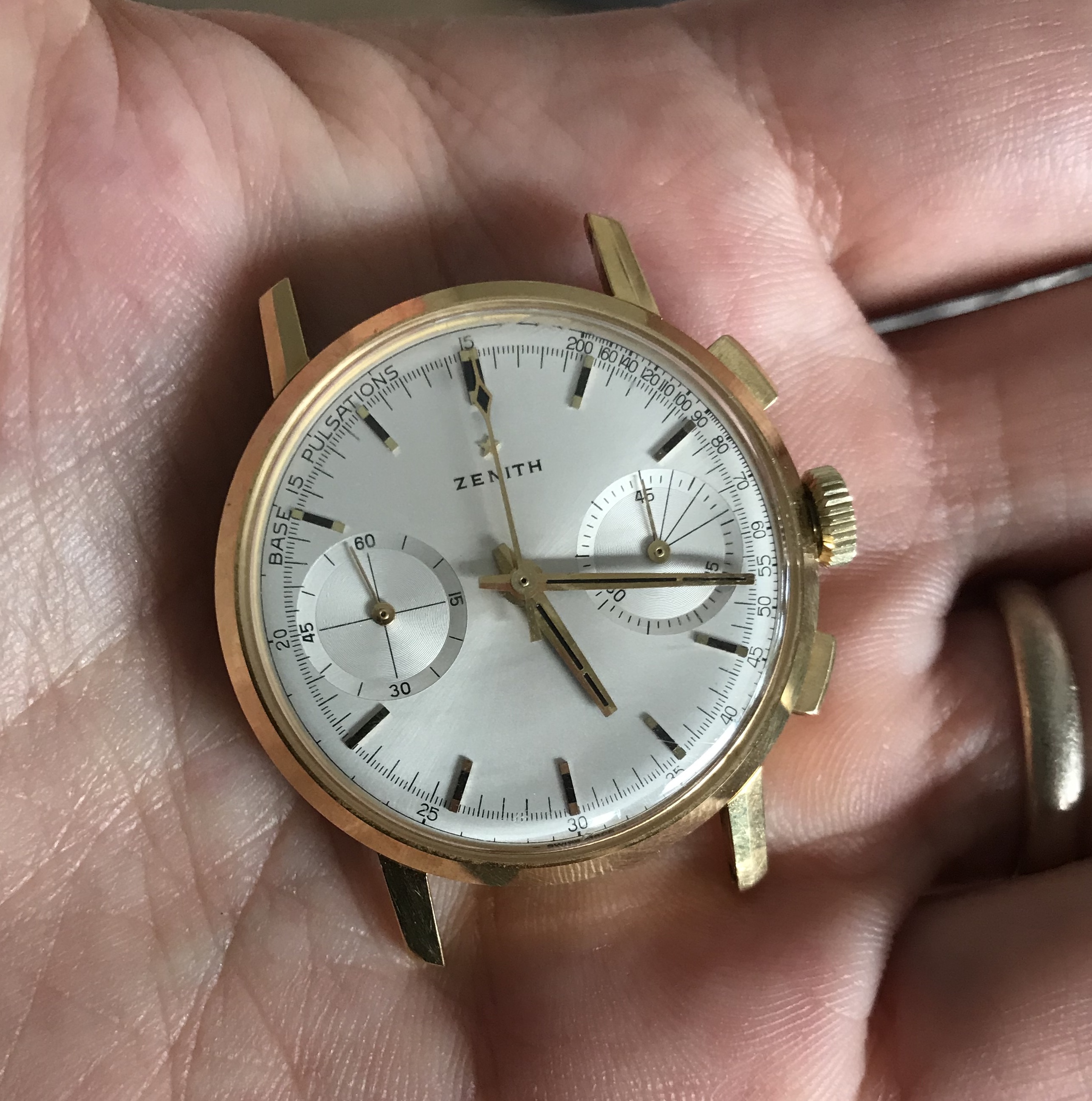 I don't know about the dial, i'm seeing a couple of same dial variations on Chrono24 and also from a member here. Caseback was unscrewed this watch has a glass back and then a metal back over it. These are the only photos from the watch I'm being offered.