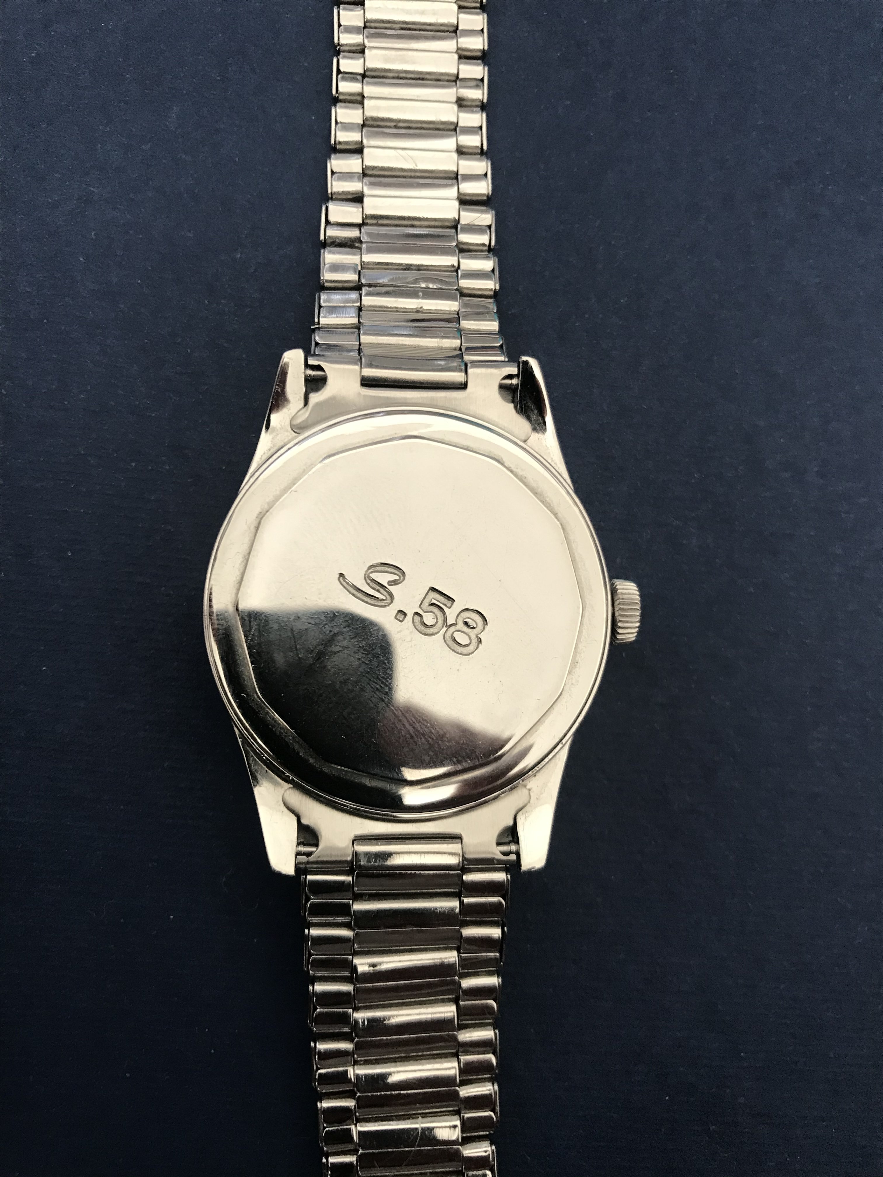 But out in the light the 12-o'clock marker is revealed to be concave. And it captures a reflection of my bare Fall backyard trees. And the nicely balanced gold touches across the dial just explode.
