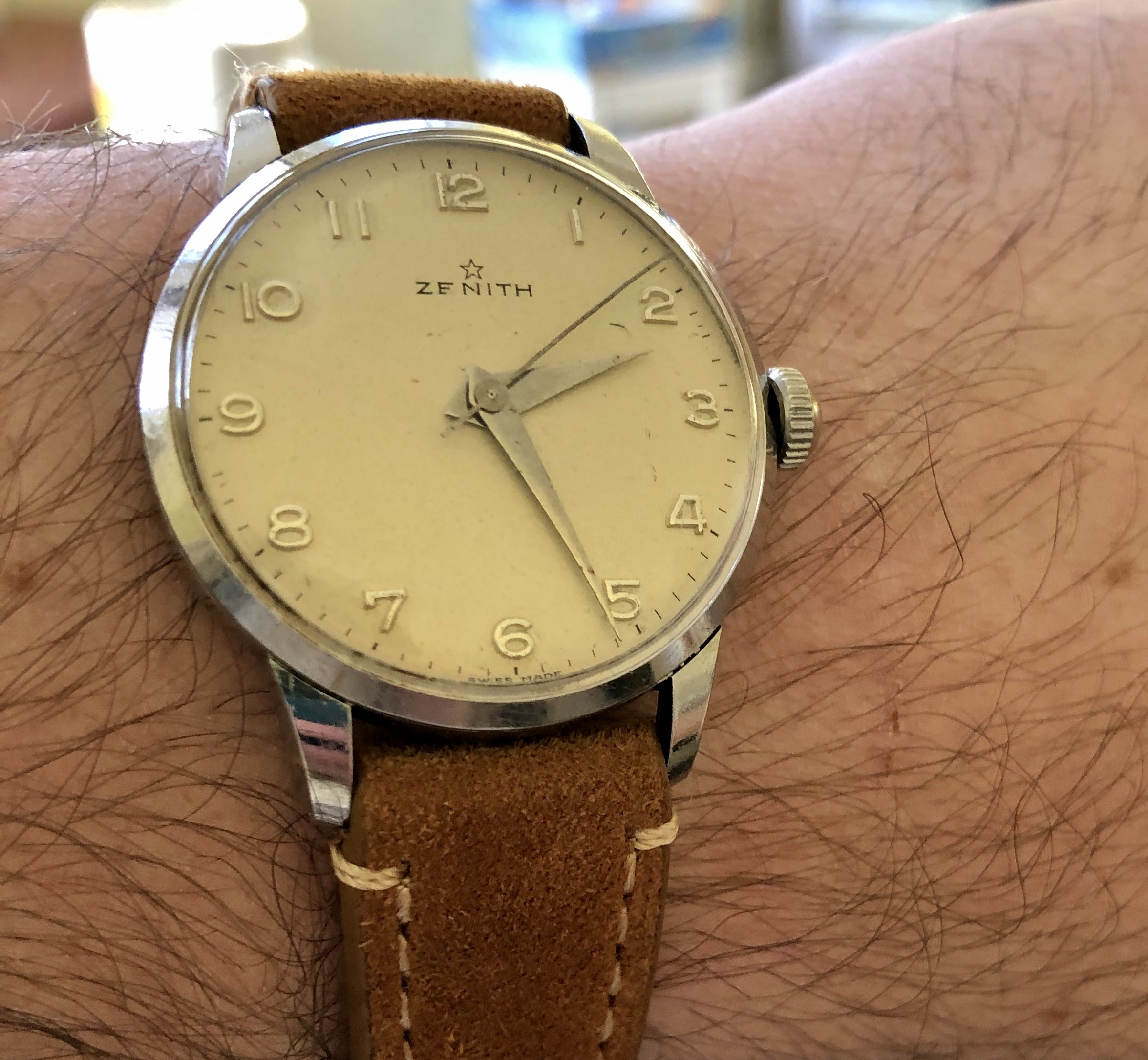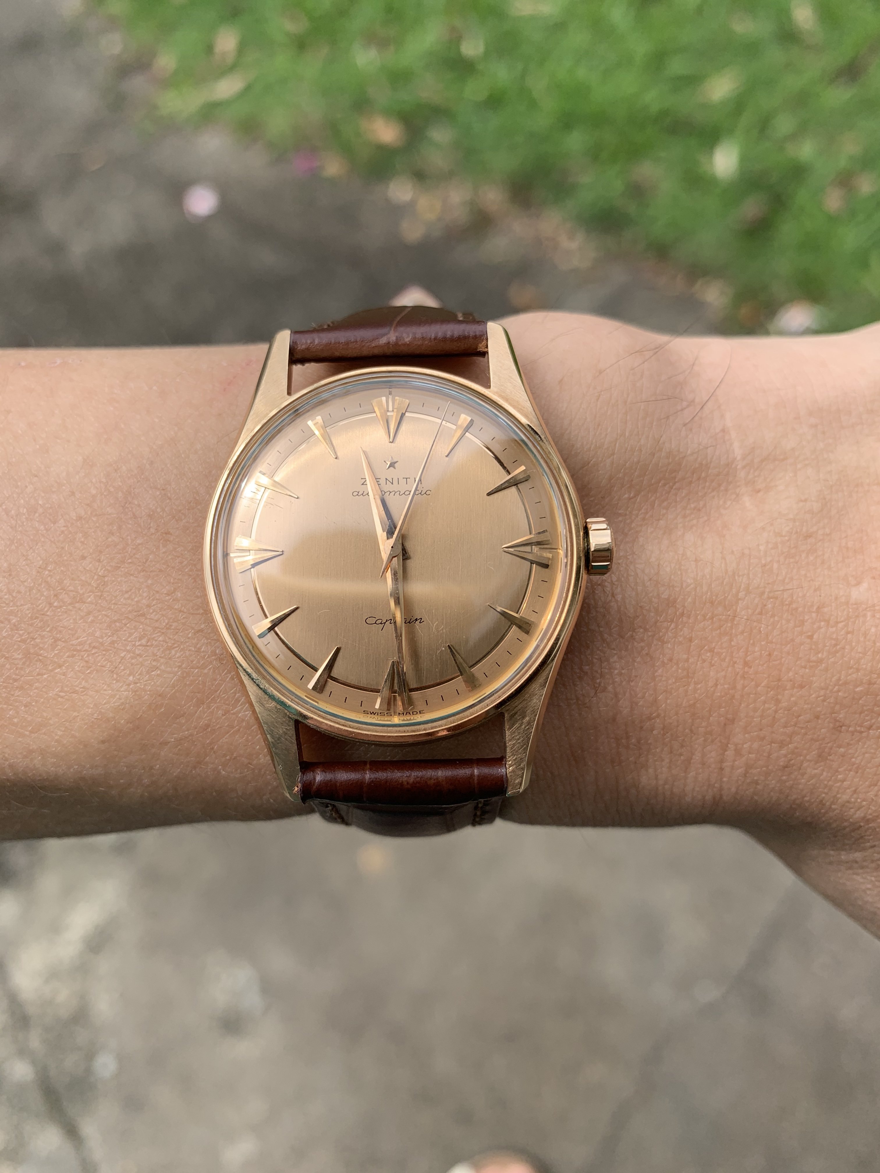 Posts 64 Likes 44 Kronos Infinity ·Feb 2, 2021 Here is my vintage Zenith, fits nice on my fat wrists.