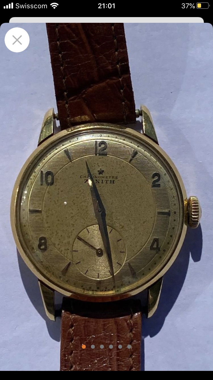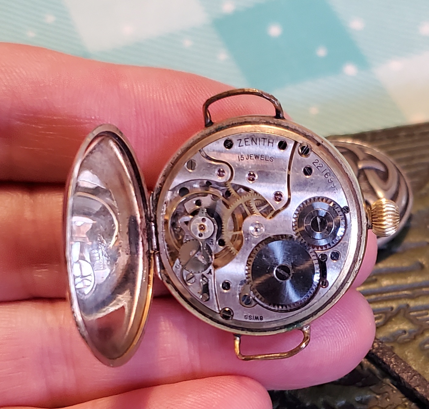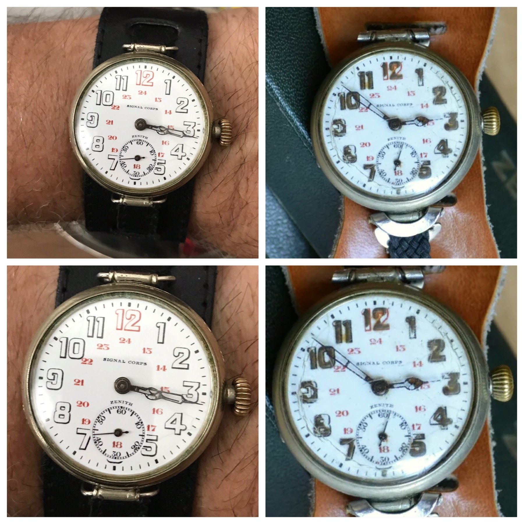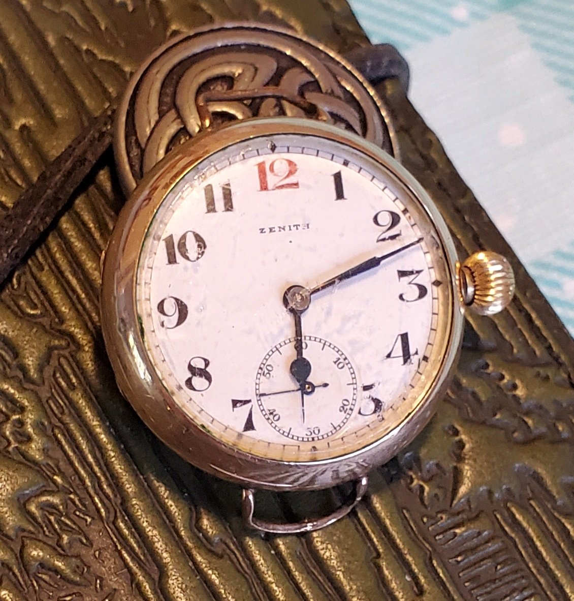 Here is an early Zenith wrist watch with wire lugs that I just purchased. It has a 33mm Cashier gold filled case and from the Rossler book, what appears to be a 13"' NVSI ,15 jewel movement. Movement SN is 2216995.The dial looks good but the glass crystal is pretty beat up.