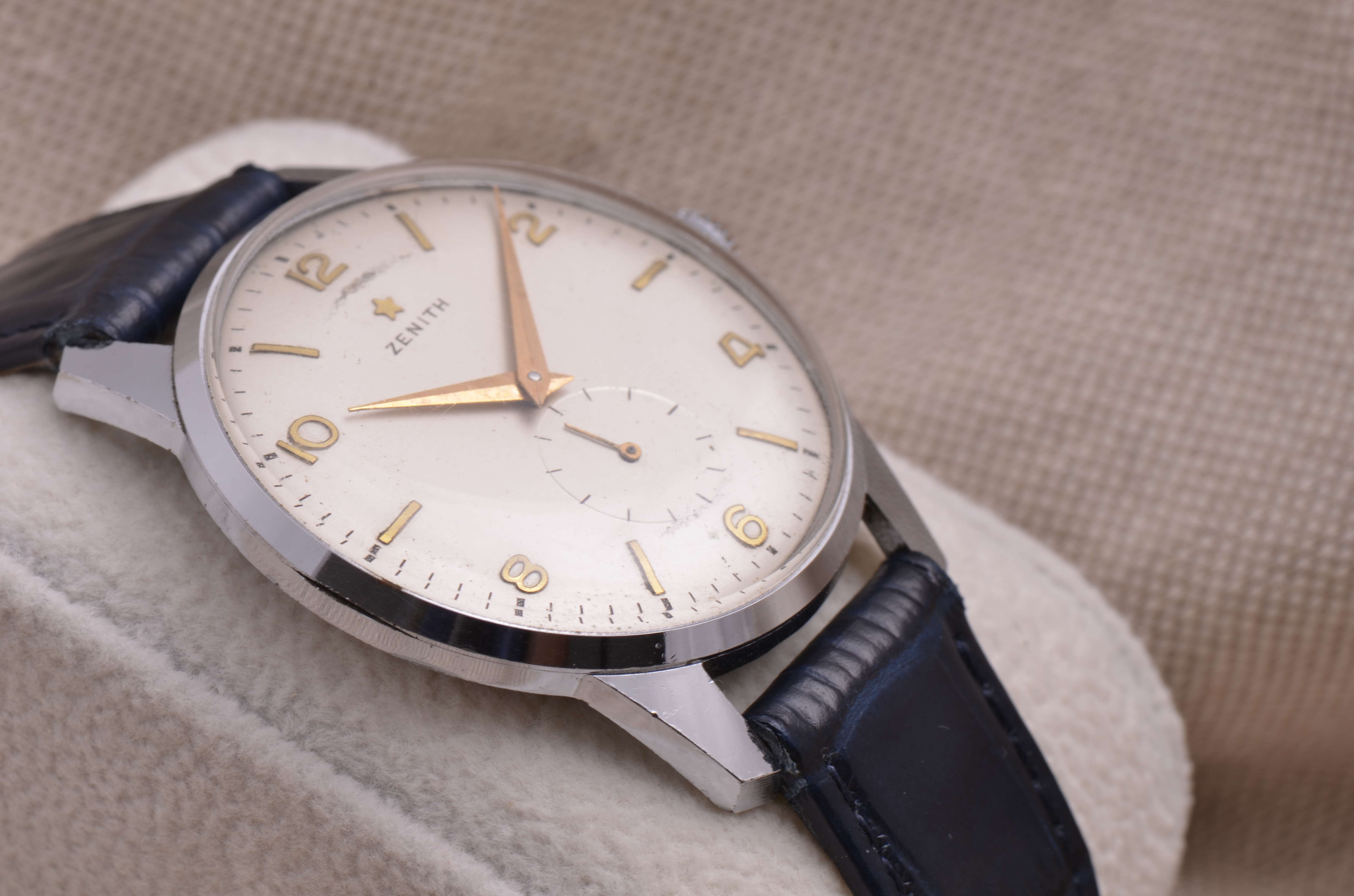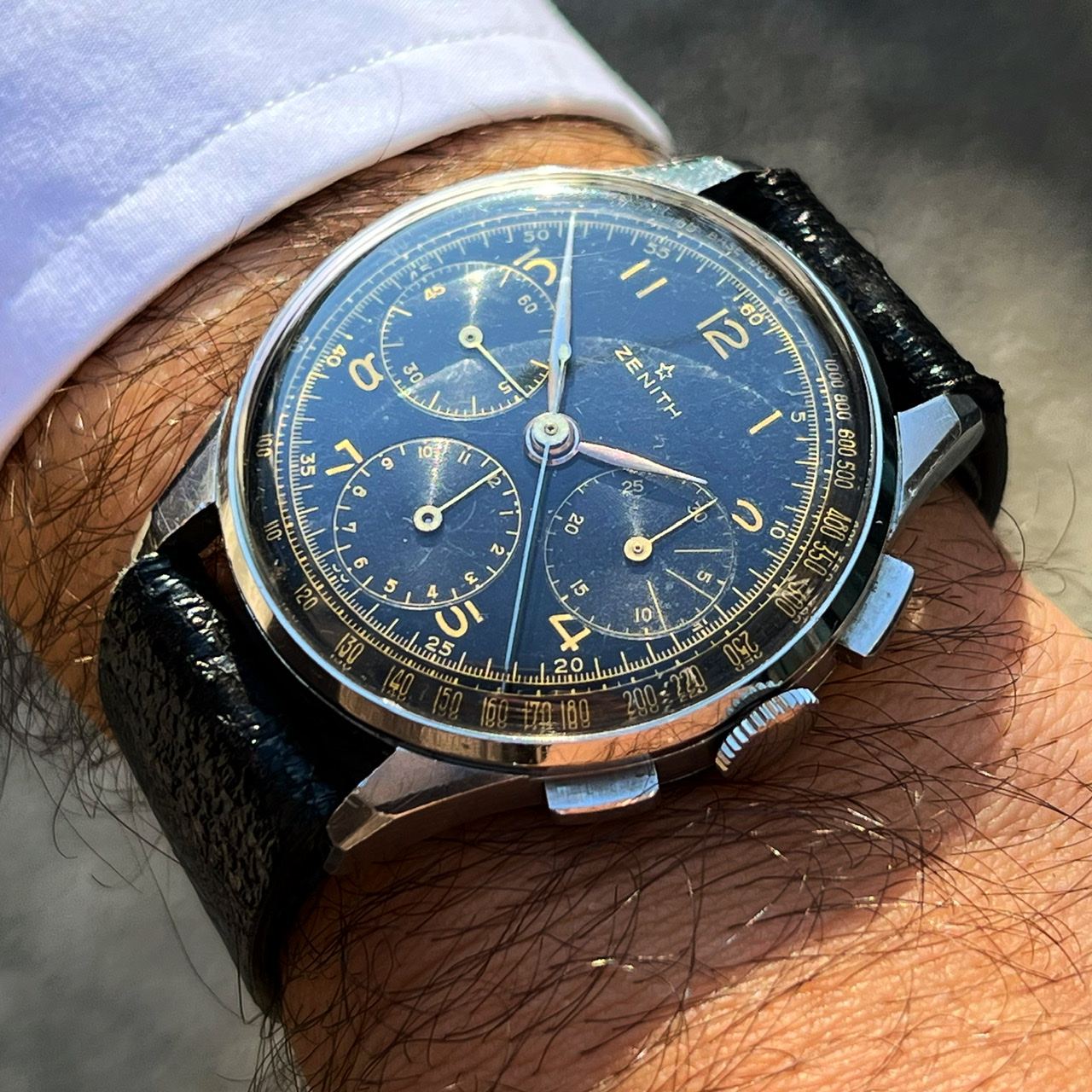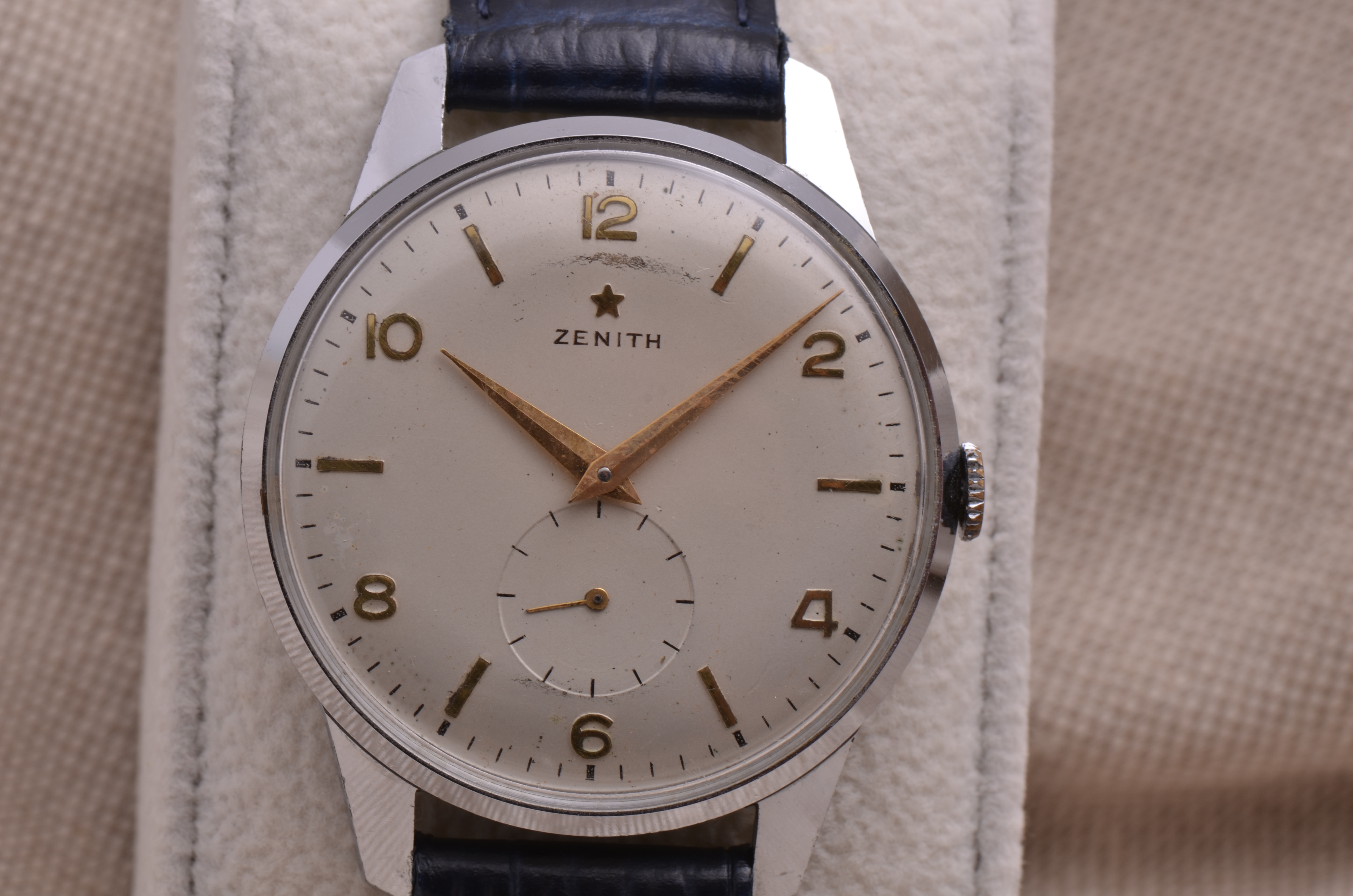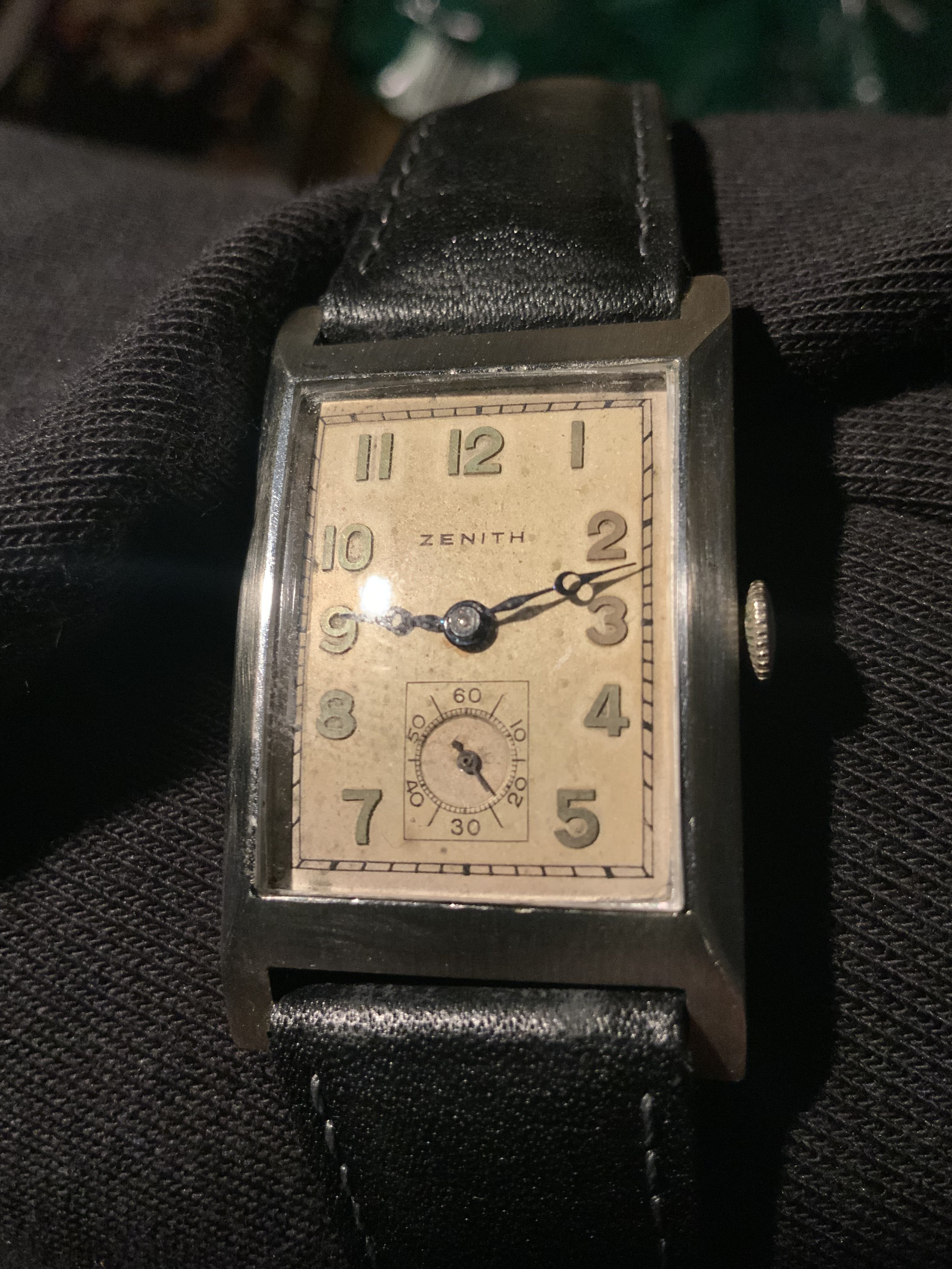 Posts 197 Likes 1,131 Mauzer ·Nov 30, 2021 Nice to see some vintage Zenith watches here. Here's 1/2 vintage Zenith I got: Cal. 106-6, oversized model (37mm), from 1955-1956 Some damage on the dial, but still like the overall appearance and wearability of the watch.