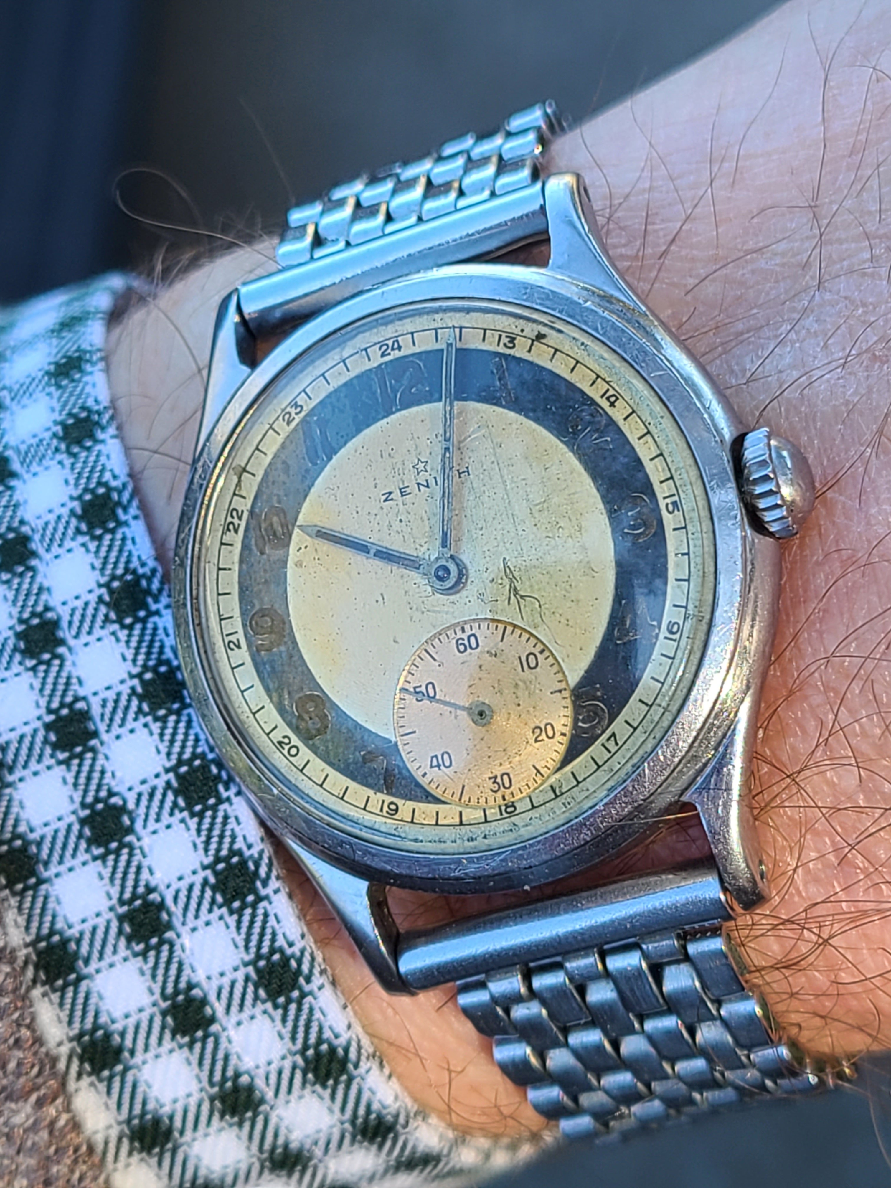 Zenith Defy A3651 in all original condition (no polishing, no relume, no redial, original crystal) on its unpolished Gay Freres ladder bracelet.