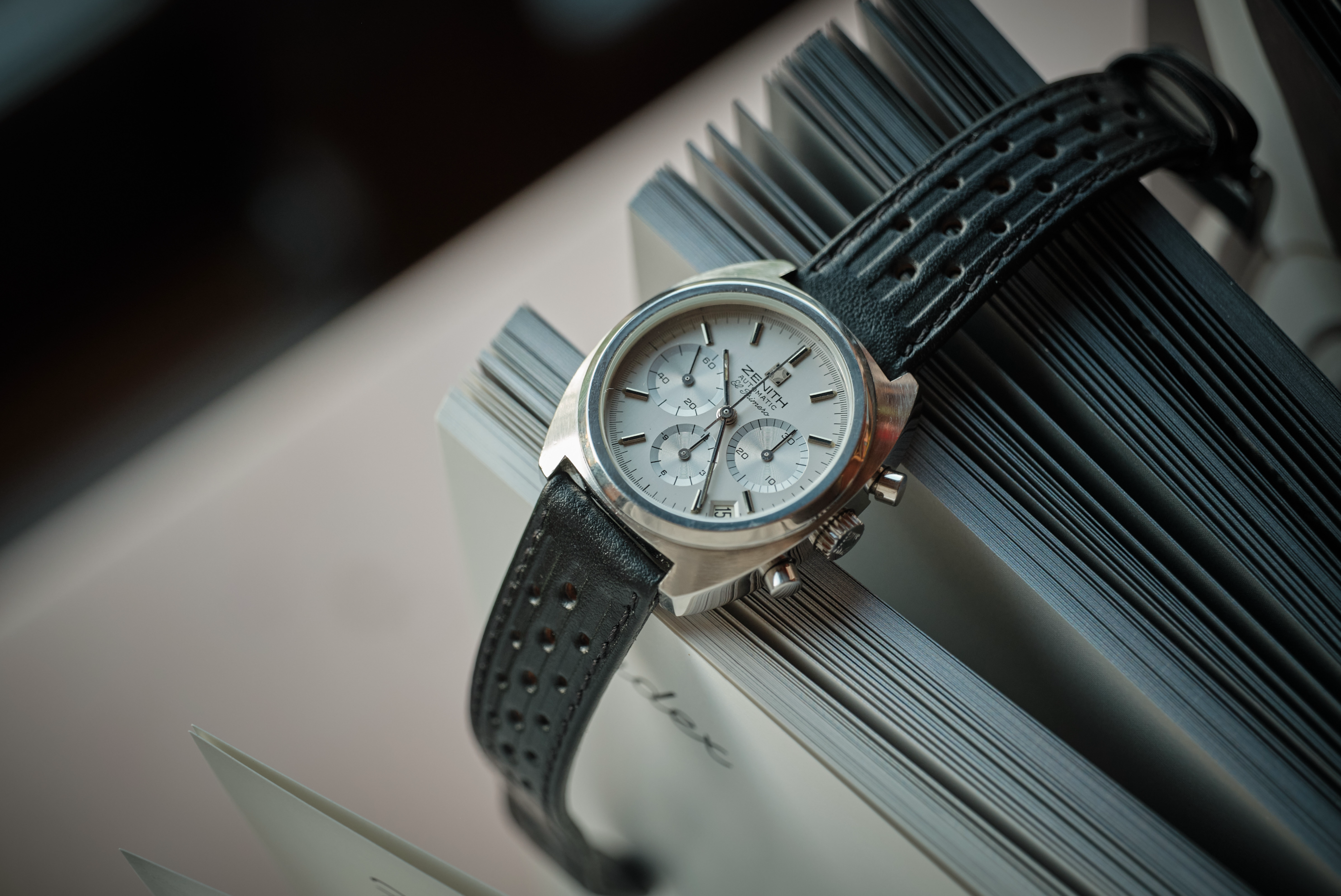 Movado-Zenith era Movado Kingmatic HS 360 with a red fum茅 spider dial.