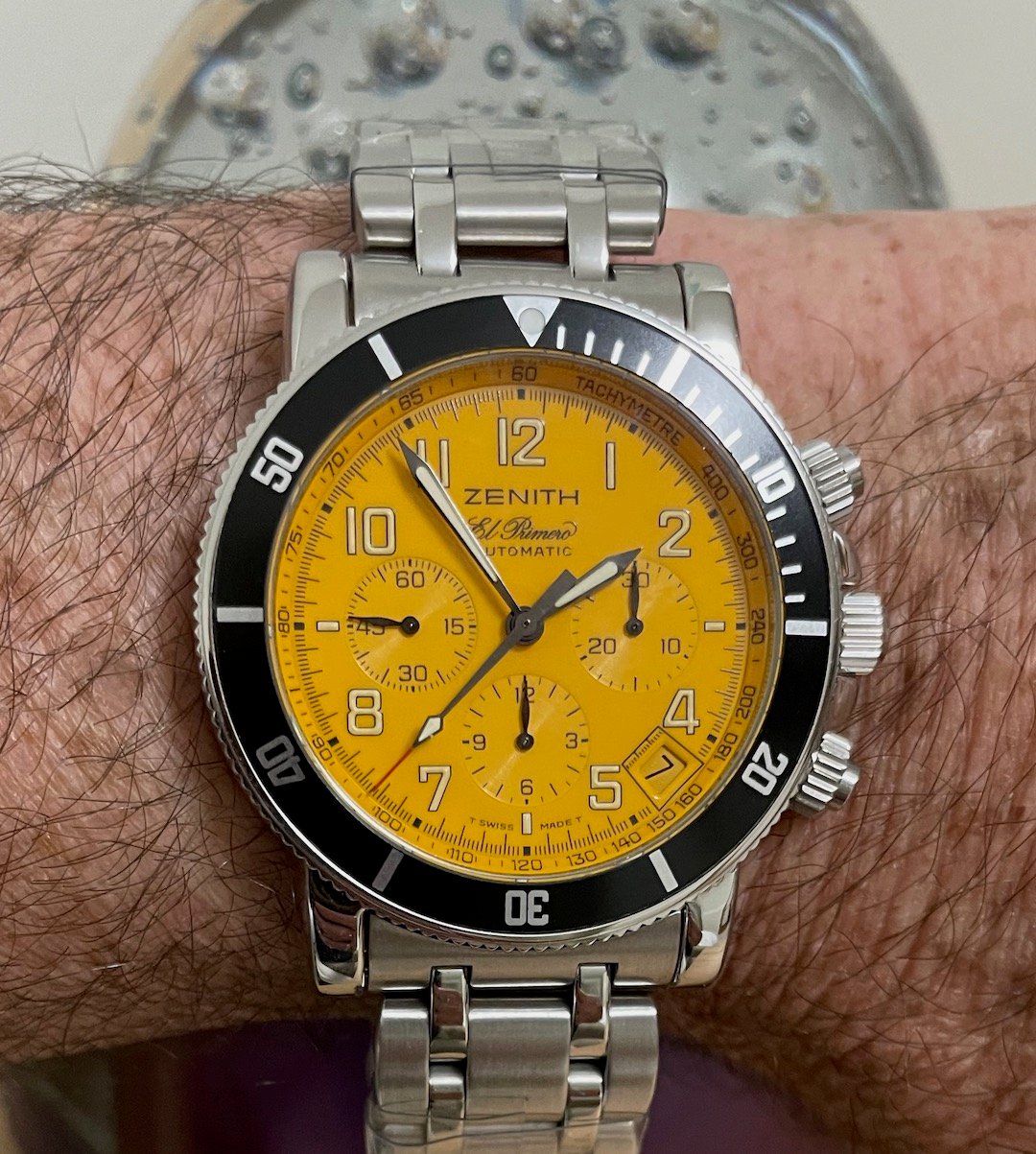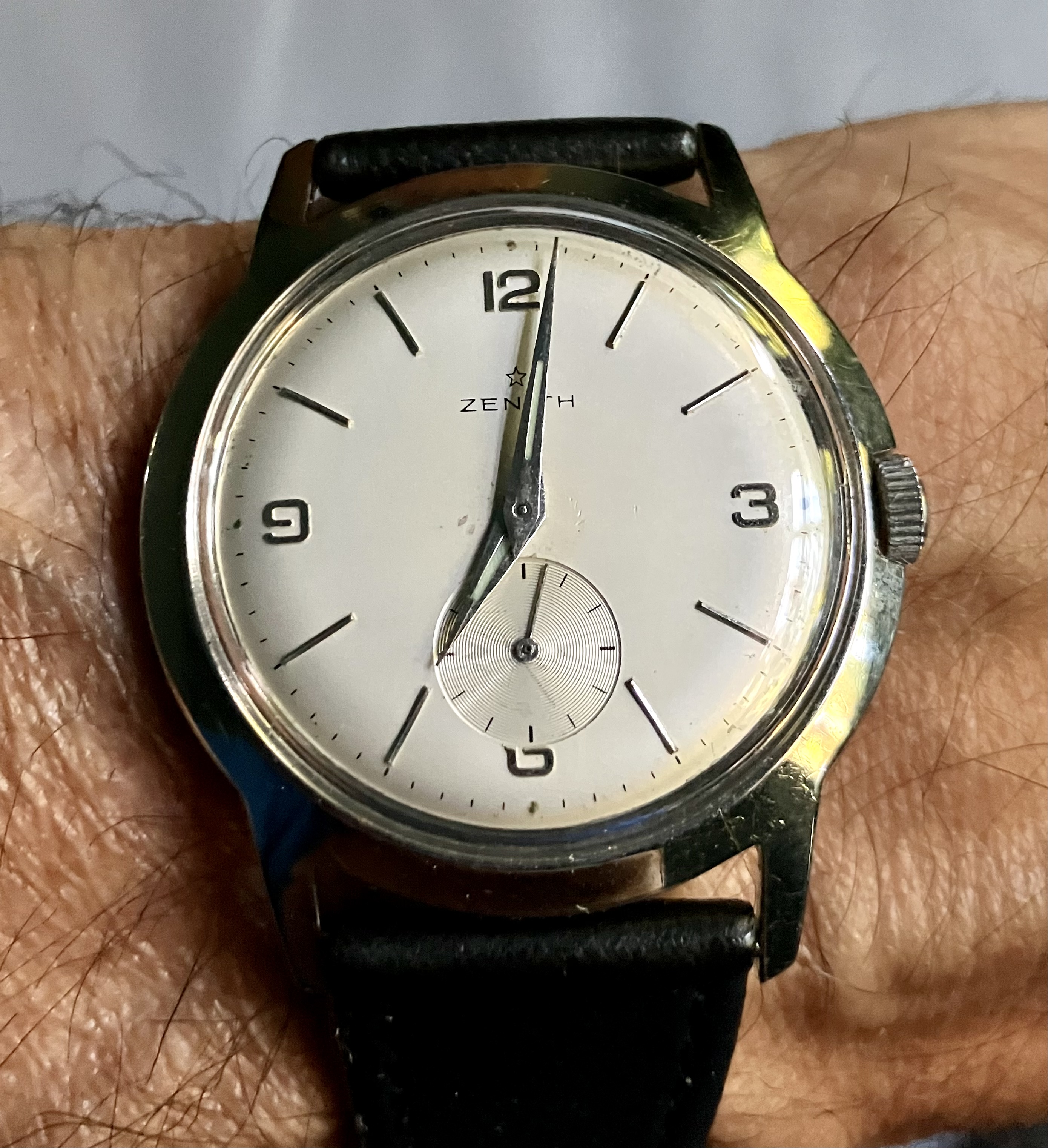 I think this qualifies. Chatham Instrument Co. with the Zenith 12-4-P-50-6 inside (12-4-P with sweep second and incabloc)