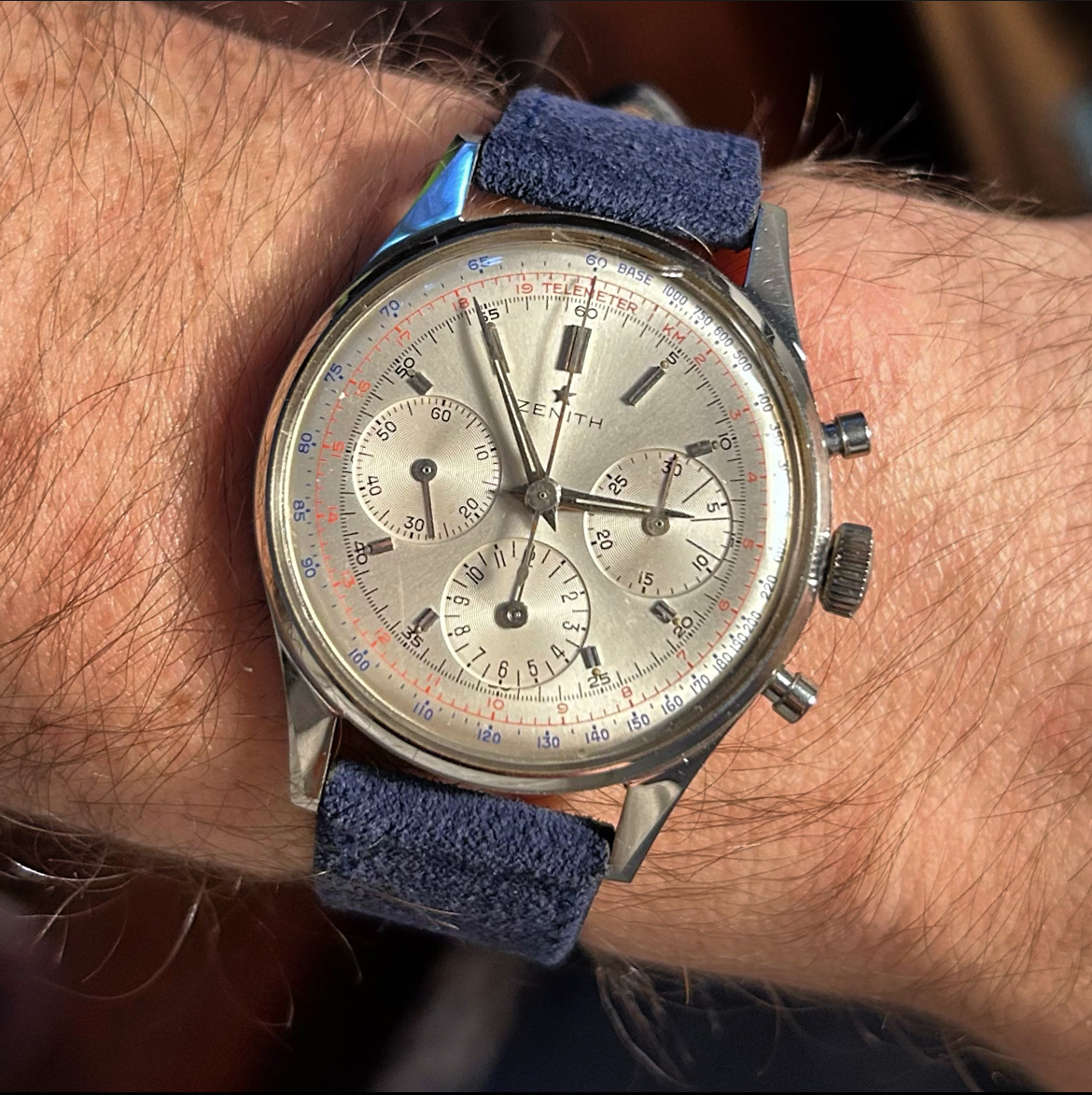 Hi everyone! This is my first post here, and this watch may look familiar to some of you. This is my first vintage Zenith (cal. 136 H with telemeter dial, which I picked up a few weeks ago, c/o the man, the myth, the legend, @wristpirate), and I am absolutely in love. It has not left my wrist since it arrived. Hopefully it's the first of many. Looking forward to chatting with you all!