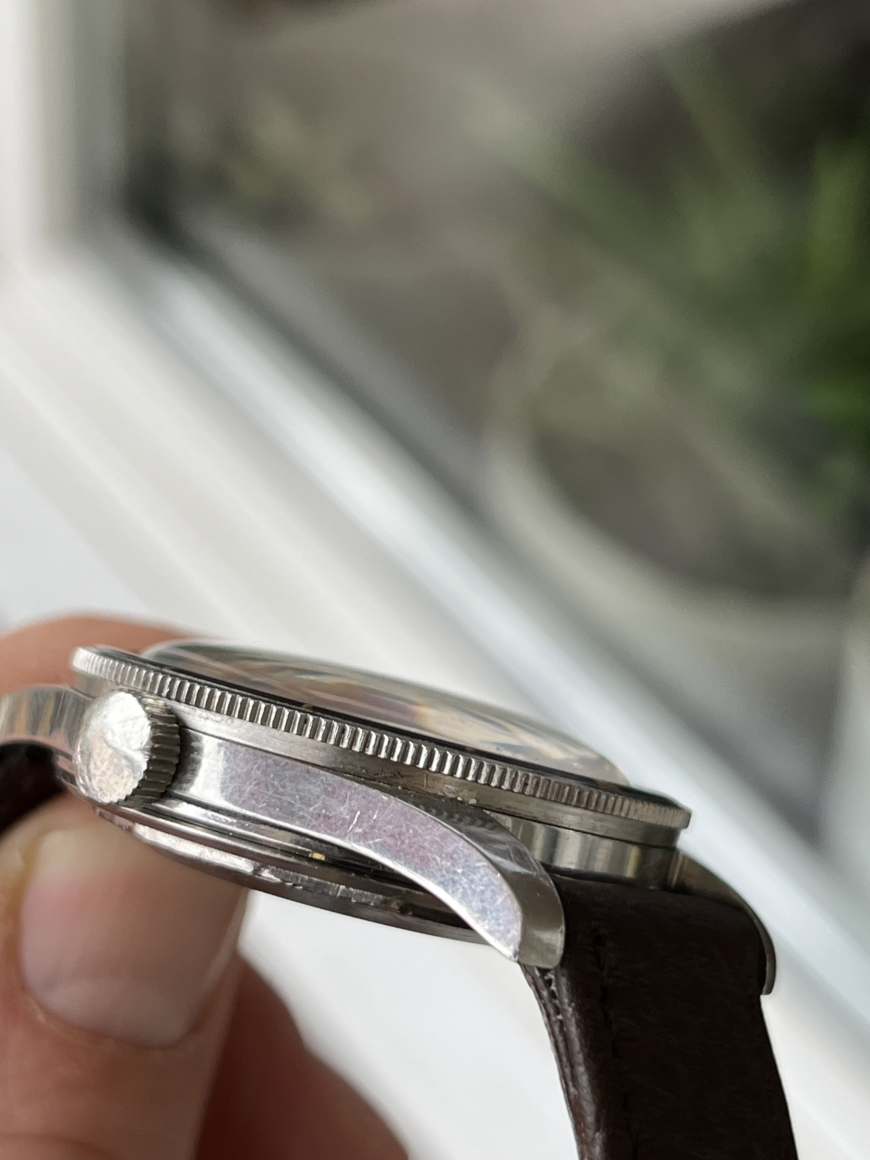 The watch runs and keeps the time well. Service history unknown. And I guess that unsigned crown is a service replacement?