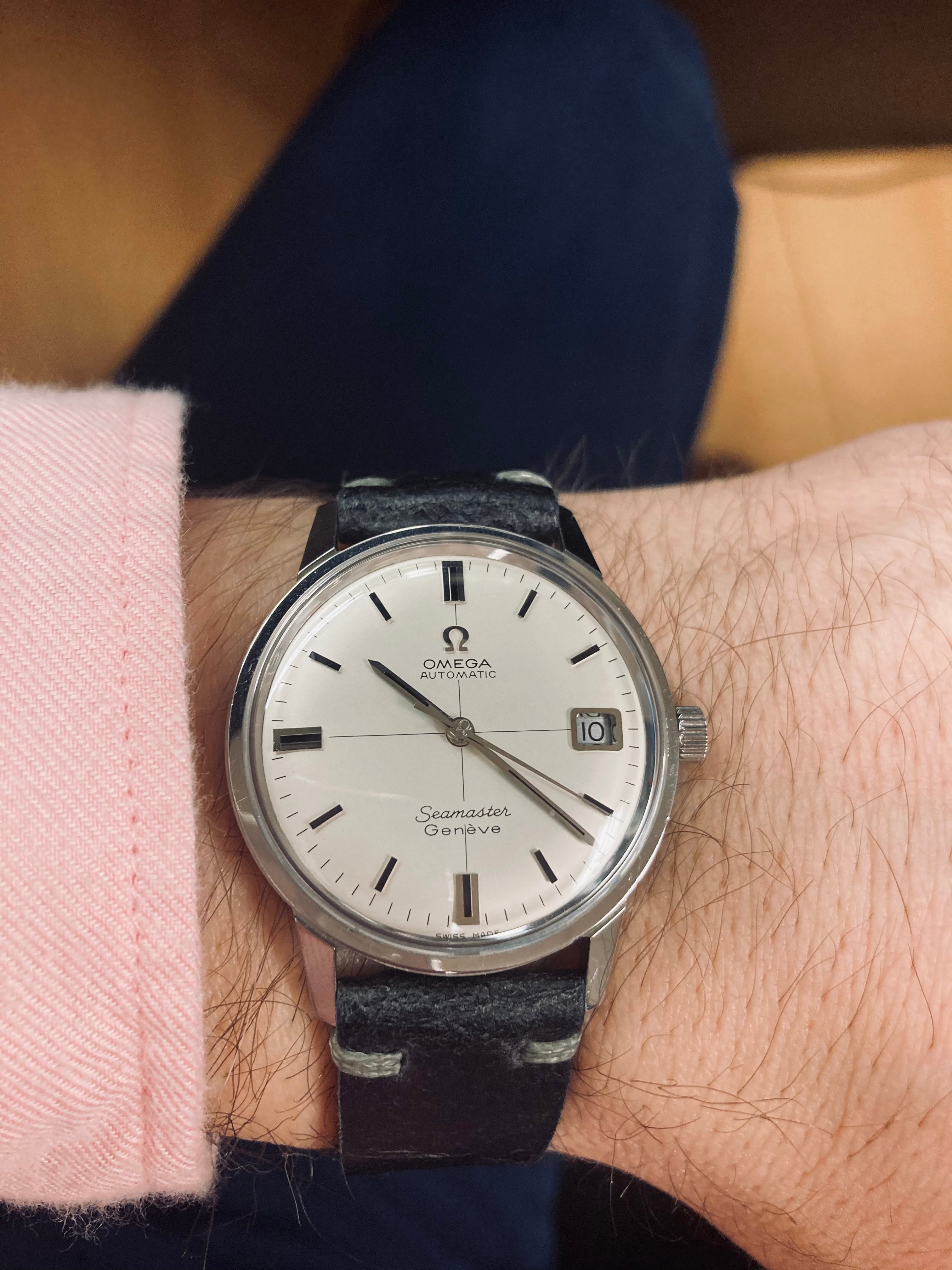 My dress watch is a Cartier Tank Solo XL, it ticks all the boxes for me - iconic shape, Roman numerals, leather. I have purchased a blue leather strap to add versatility for my suits and it matches the Cartier blue on the hands and crown which looks great.