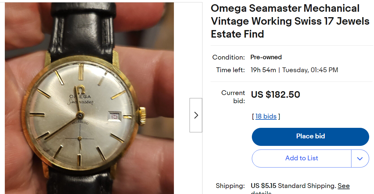 Posts 33,755 Likes 38,417 dsio ·Oct 17, 2023·Ash @ ΩF Fake vintage Seamaster https://www.ebay.com/itm/2045046957...E0PgZBH1n7A==|tkp:Bk9SR7rMmu3nYg&LH_Auction=1 This website may earn commission from Ebay sales.