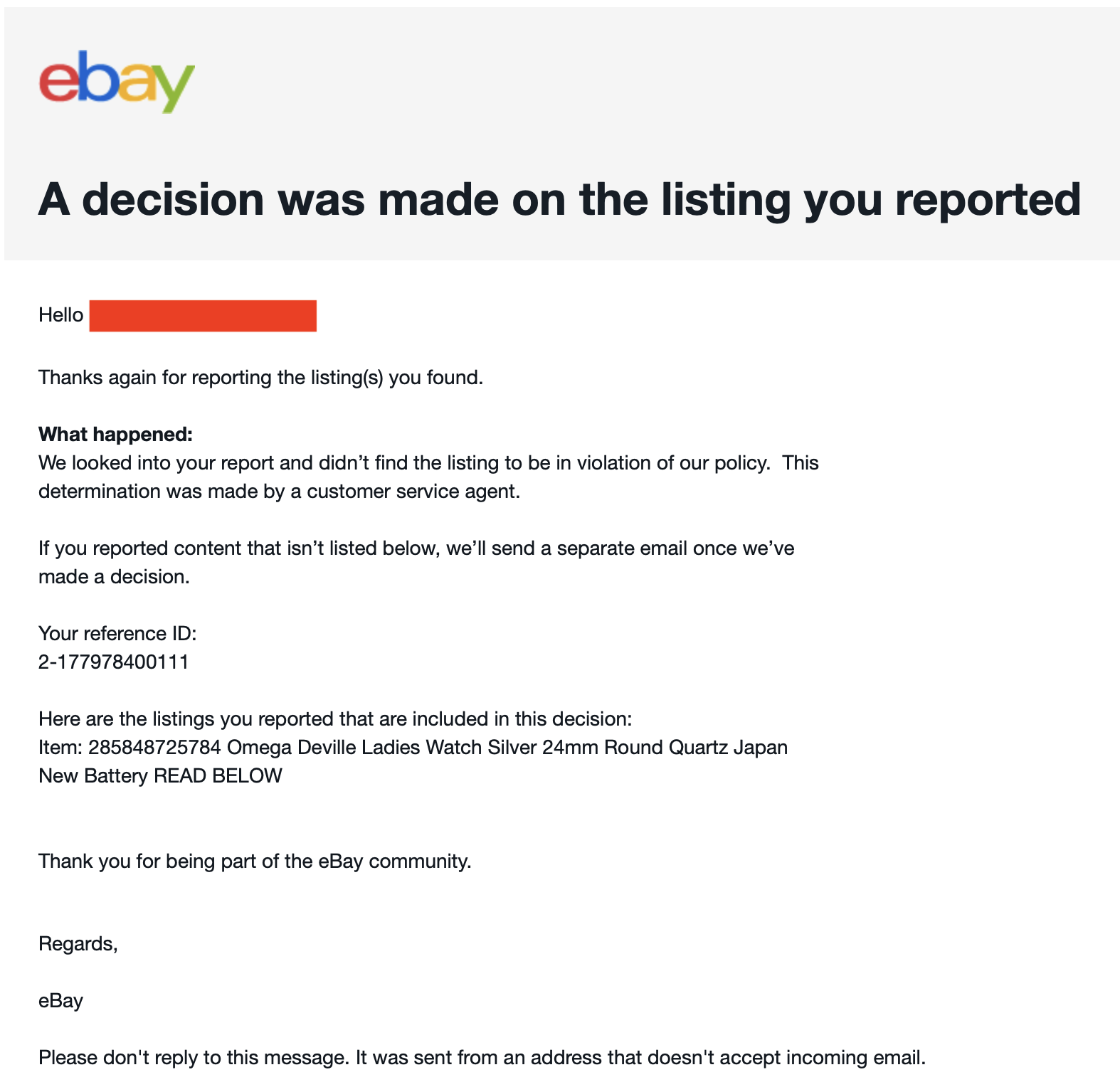 "Dear friend I am sorry to tell you but the watch you are selling are fake. Please take this listing down or at least mention in the listing that the watch is fake. God bless."