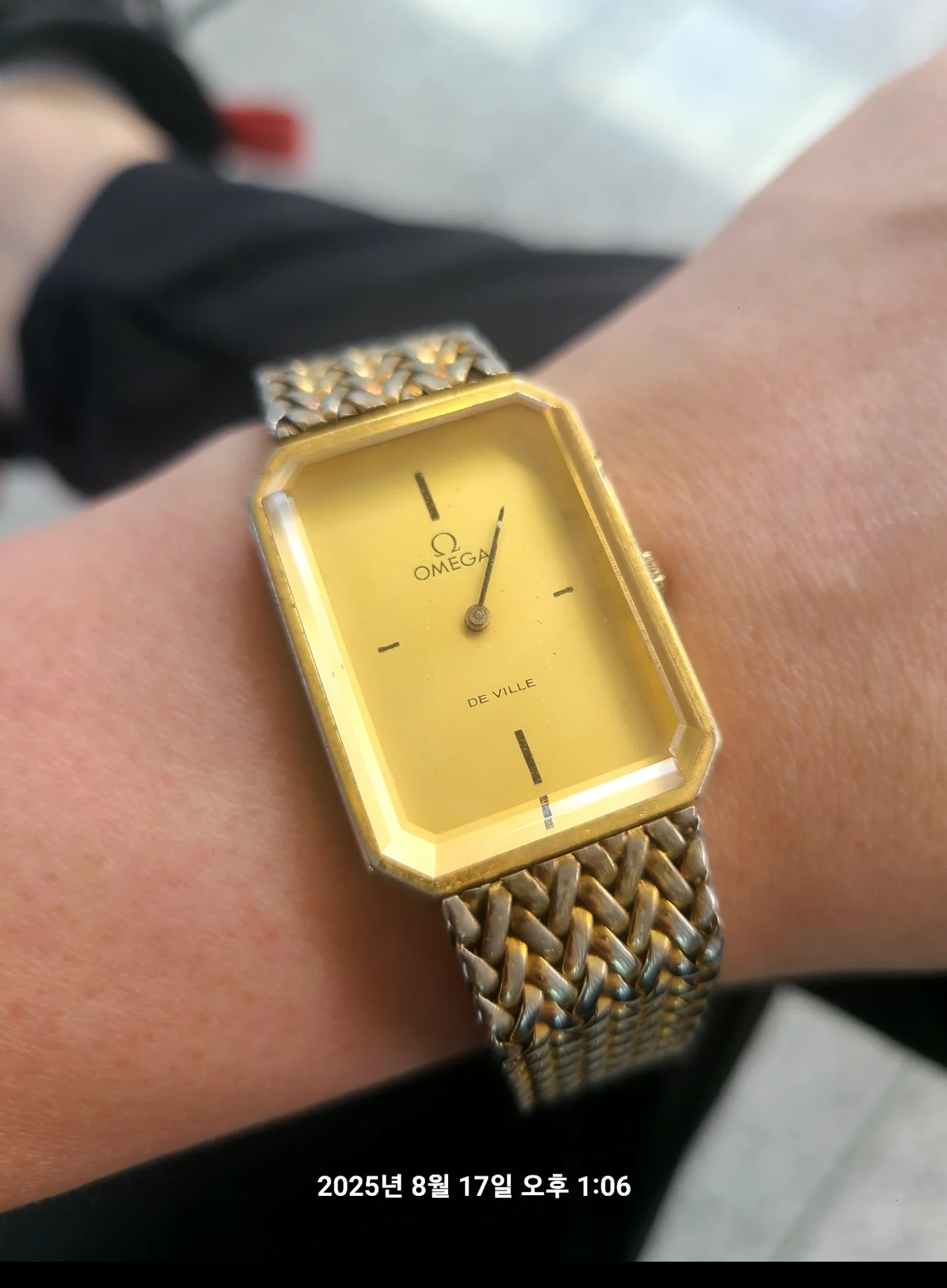 안녕하세요 여러분! 최근 빈티지 오메가 시계를 물려받았는데, 꽤 특별해 보여서 도움을 요청드리고 싶습니다. 아래 정보를 바탕으로 진품 여부와 모델명을 알려주시면 감사하겠습니다. 리뷰를 위해 사진도 첨부했습니다.