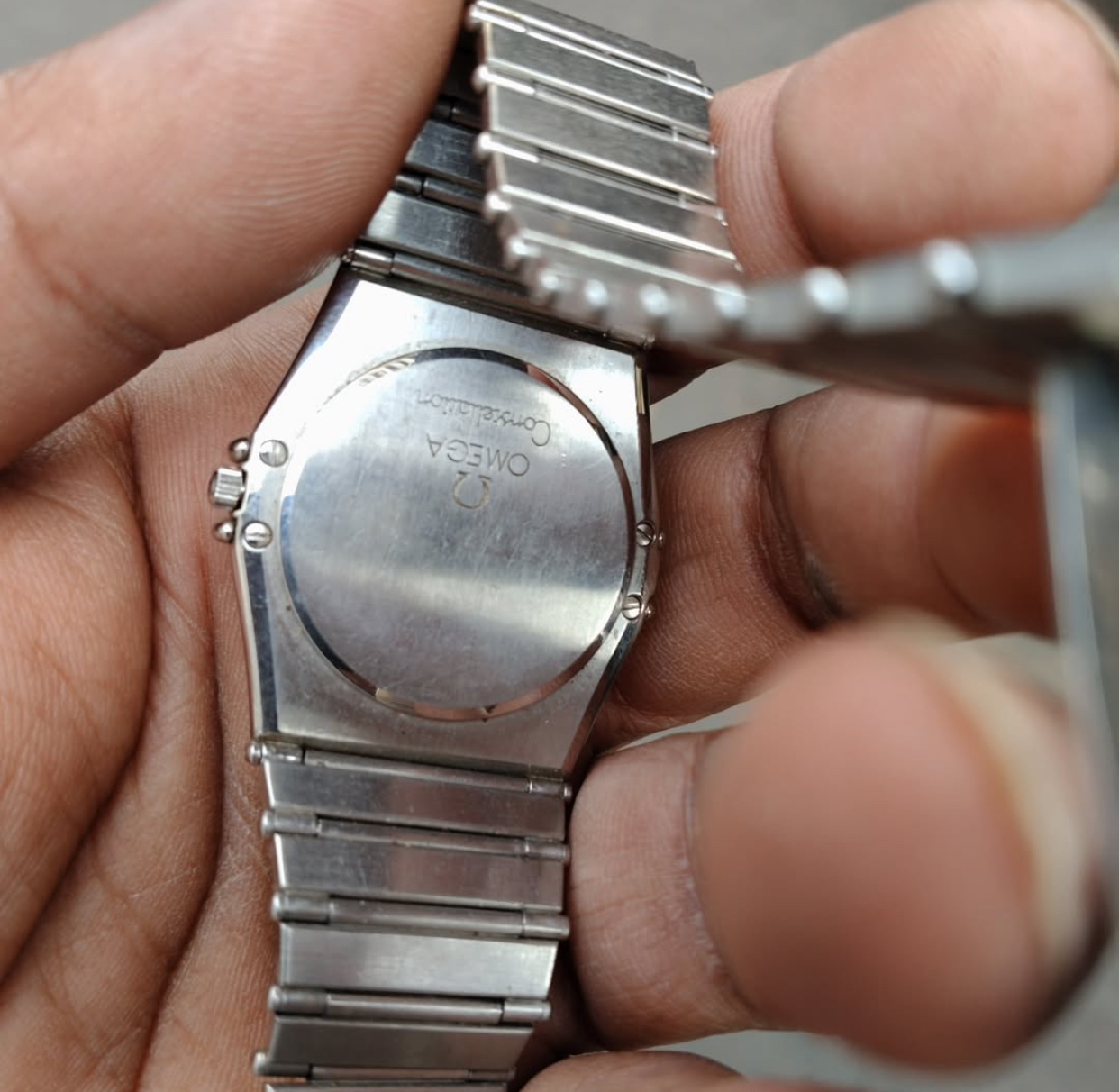 I came across this Omega constellation quartz and seek your help to authenticate the watch. my main concern is the 4 screws seen at the back of the watch. While checking internet, i couldn't find any specimen having this type of case back.